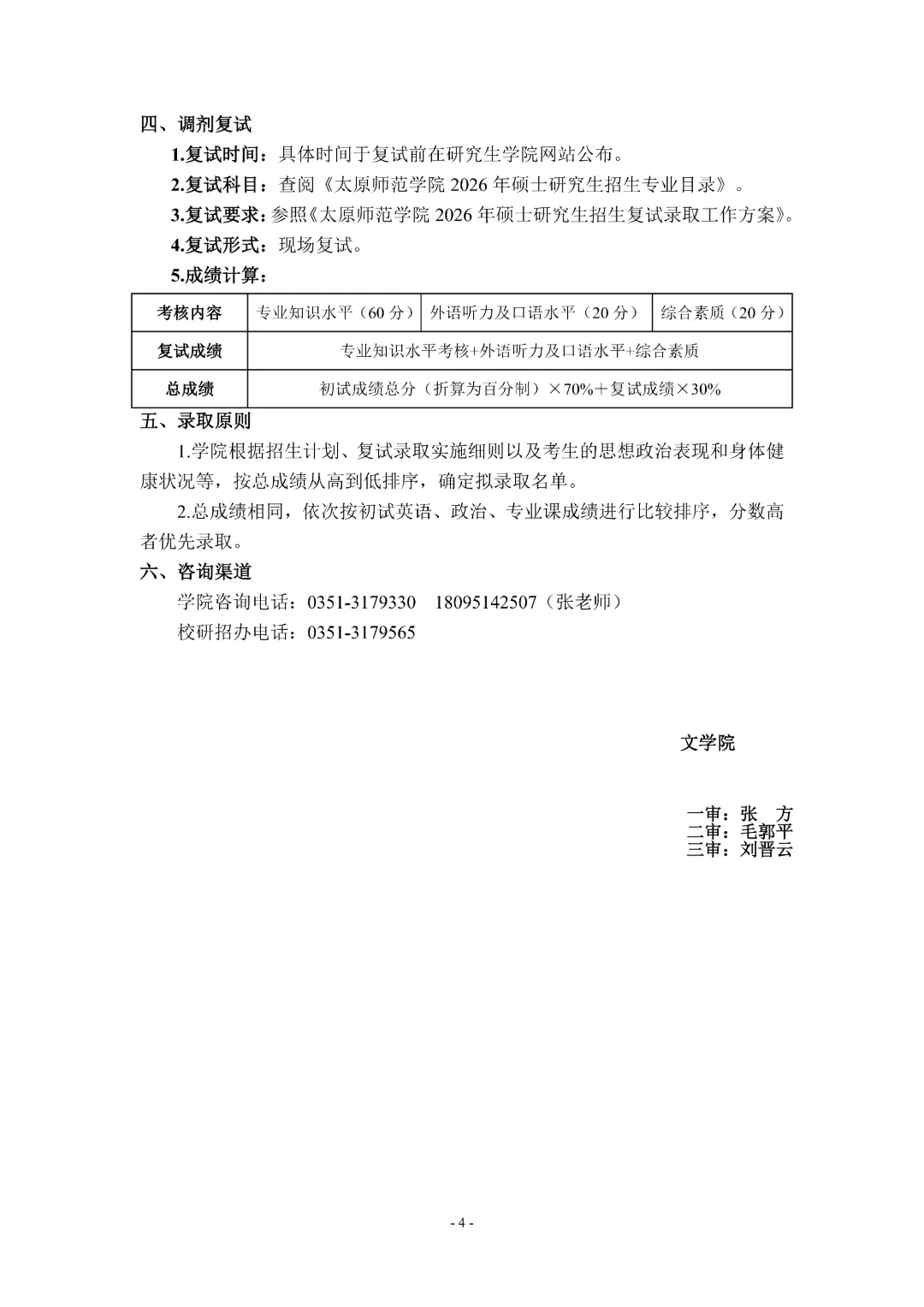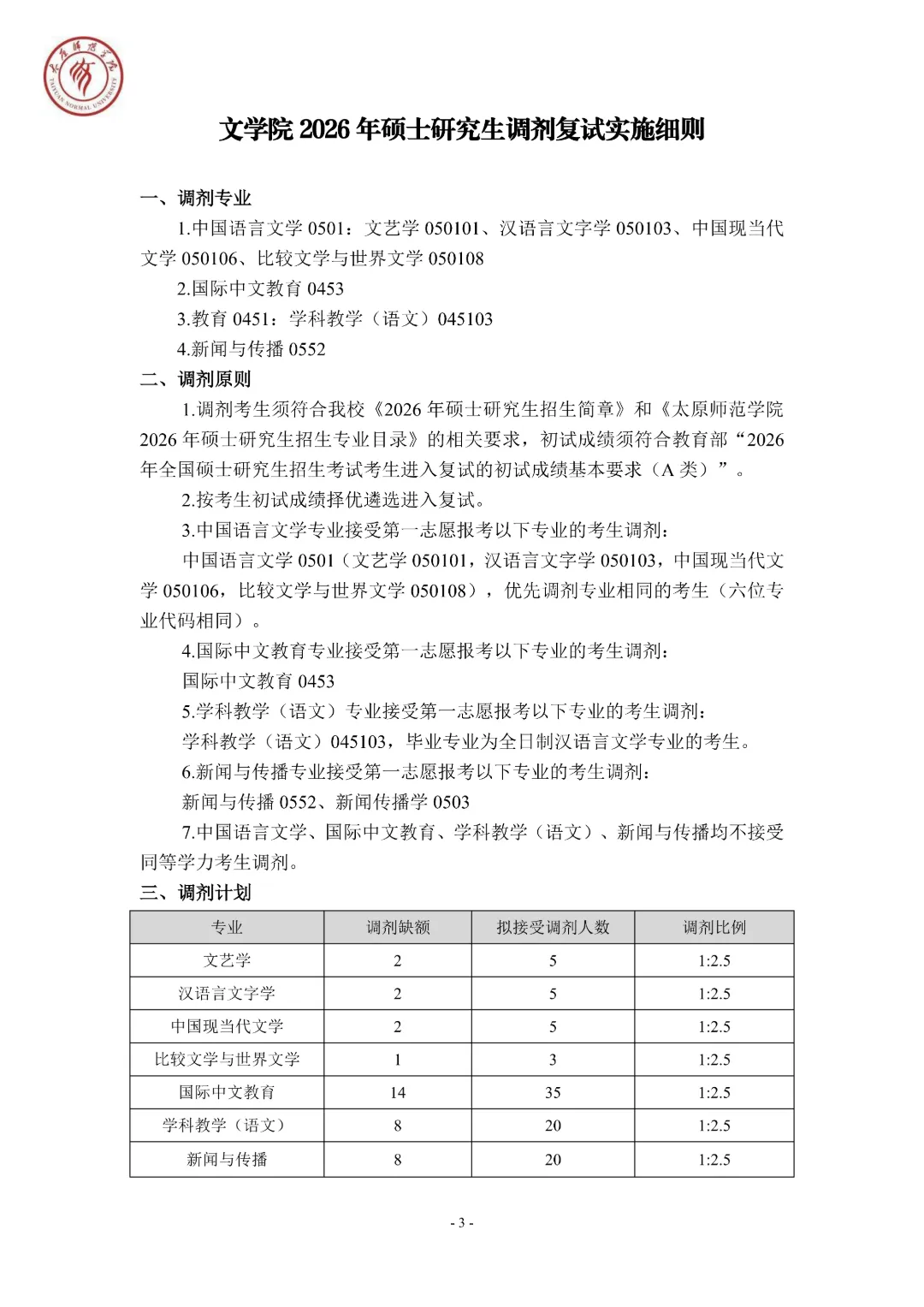 >太原师范学院文学院2026年硕士研究生调剂复试实施细则