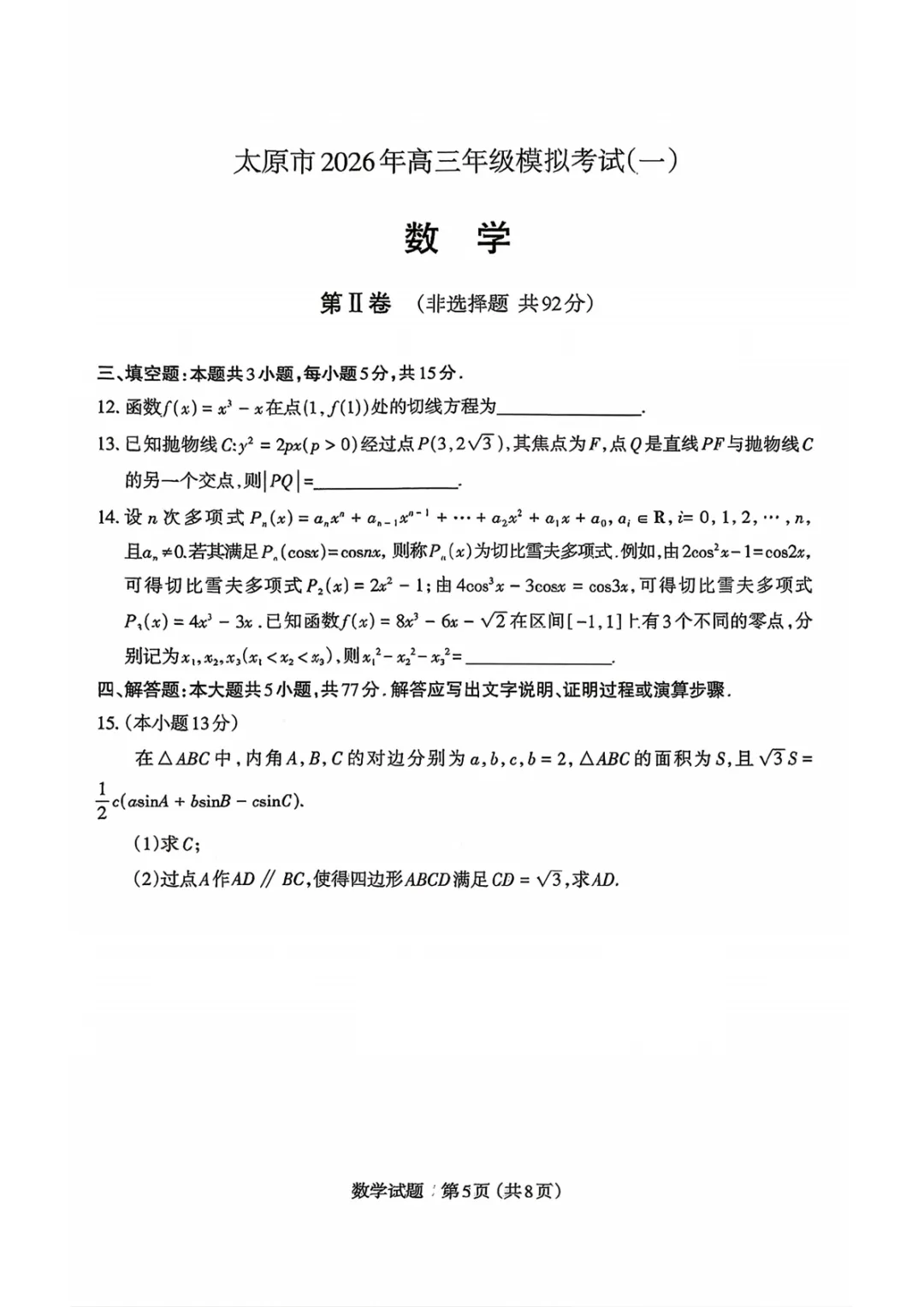 >【太原一模全科】山西省太原市2026年高三年级模拟考试(一)