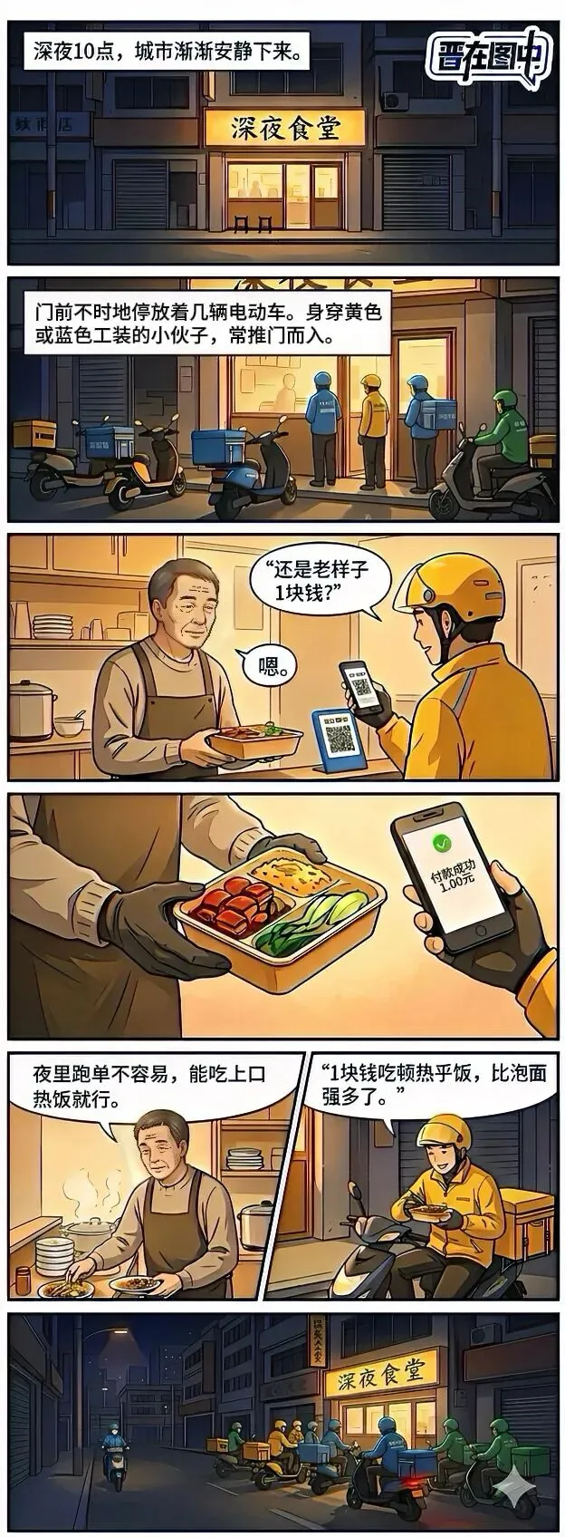 一元钱,不多,稳稳守住深夜奔波者的体面;一盒热饭,不大,盛满最朴素、最动人的温柔。