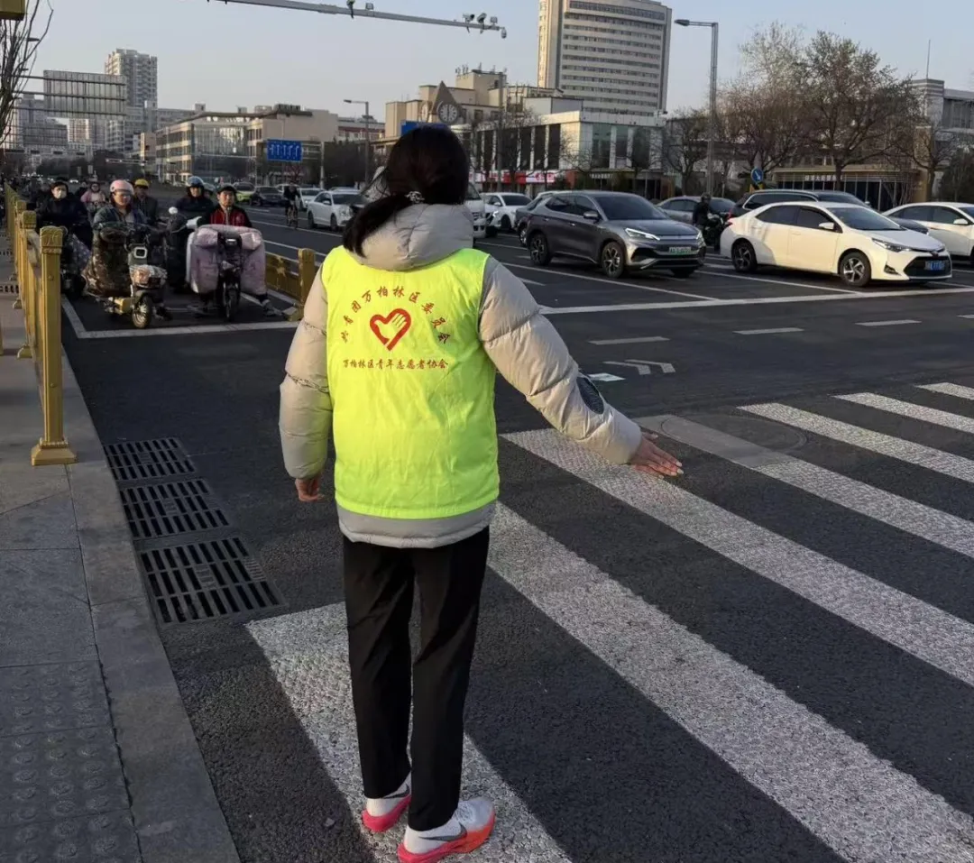 晚高峰期间,志愿者们身着荧光绿志愿马甲,准时前往太原市迎泽西大街与千峰南路交叉口、学校周边等重点路段的值守岗位。在执勤交警的统一指挥调度下,志愿者们分散在路口四角及人行横道两端,全力协助维护现场交通秩序。