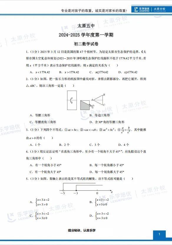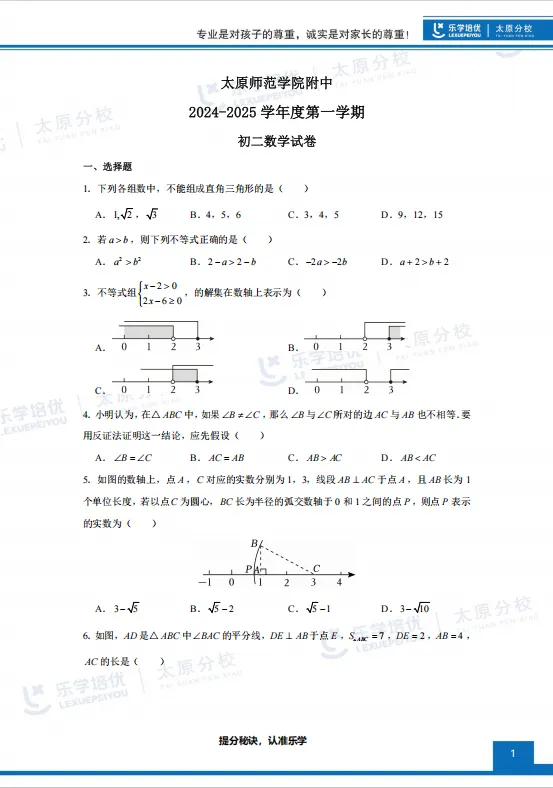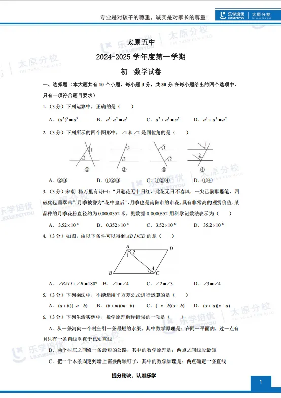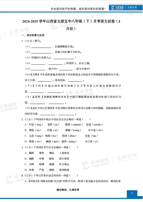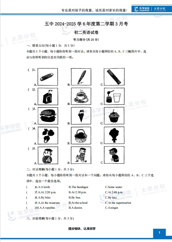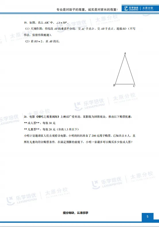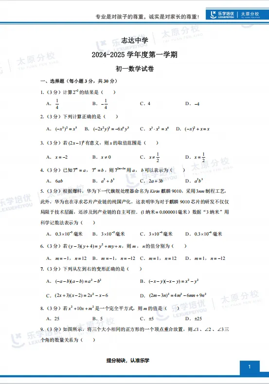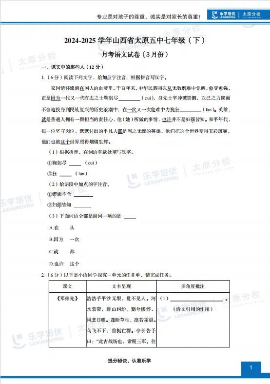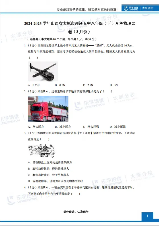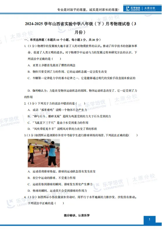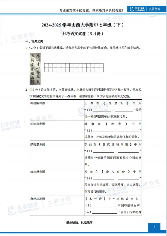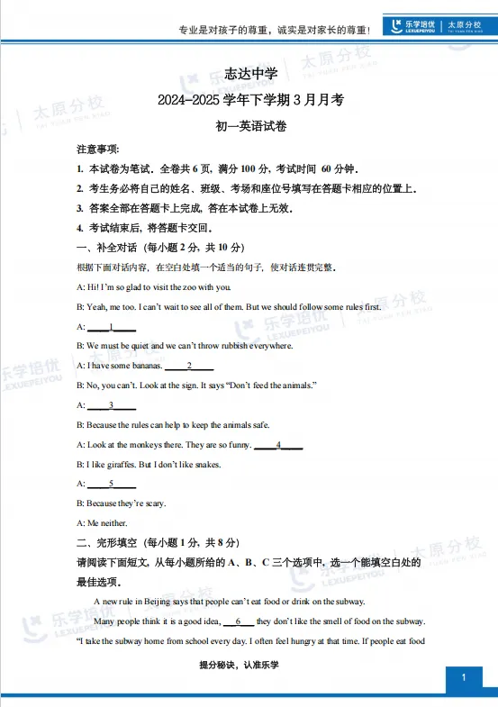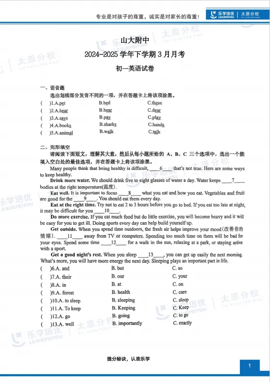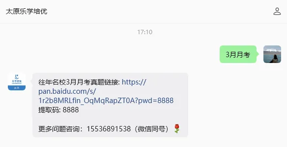 方式一:点击下方名片,关注“太原乐学培优”,回复【3月月考】即可获得下载链接