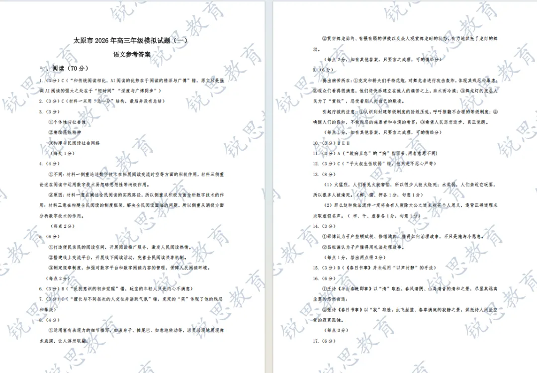 2026太原高三一模