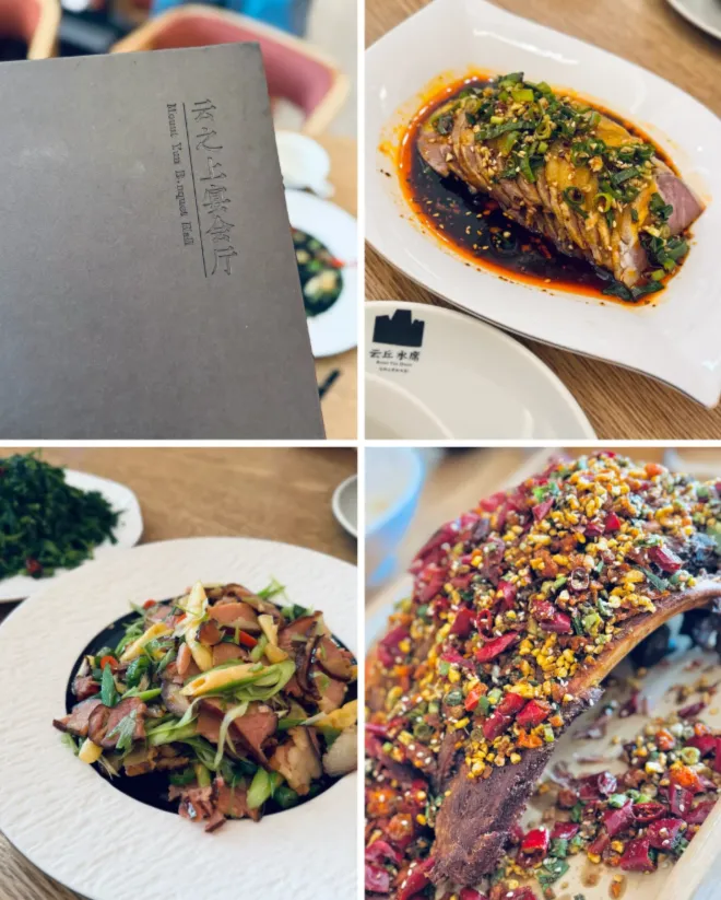中午在山里,建议选能快出餐的家常菜。来一碗刀削面,面片厚薄不一,嚼着有弹性,汤不必多浓,但要顺口。再点个过油肉,油香是有的,但不腻,配一口蒜,整个人就不累。