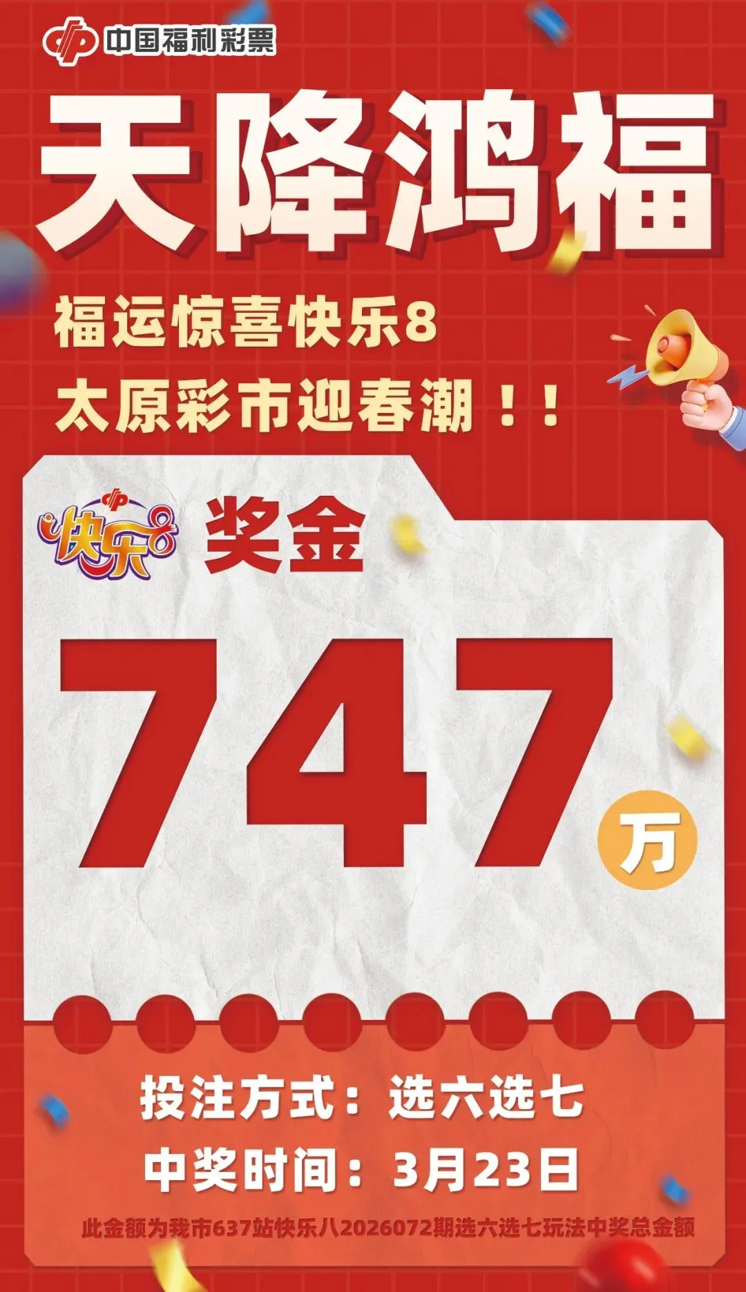 近日,太原福彩市场喜讯连连!太原637号福彩投注站凭借“快乐8”游戏,人气持续走高,短短时日里连续斩获中奖佳绩,用实打实的好运,诠释了福彩公益与惊喜并存的独特魅力。