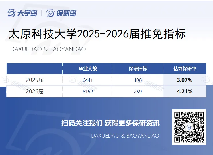 以上是本文对太原科技大学2026届的保研名额分析,感兴趣的同学可以提前看看,早做规划~