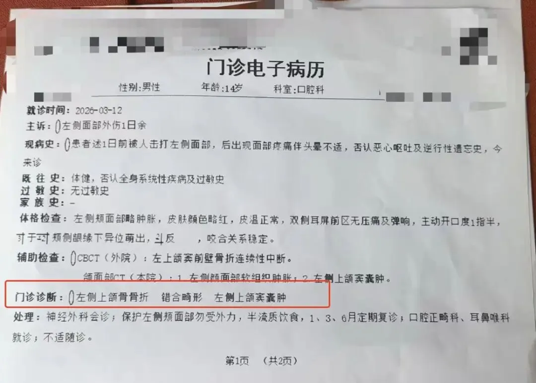 近日,山西太原的郭女士向记者反映,她初中三年级的侄子被体育老师殴打,导致面部骨折。3月26日,涉事民办学校的负责人宁女士回应记者称,打人的体育老师已被开除,家长已报警,目前正与家长协商赔偿等后续事宜。