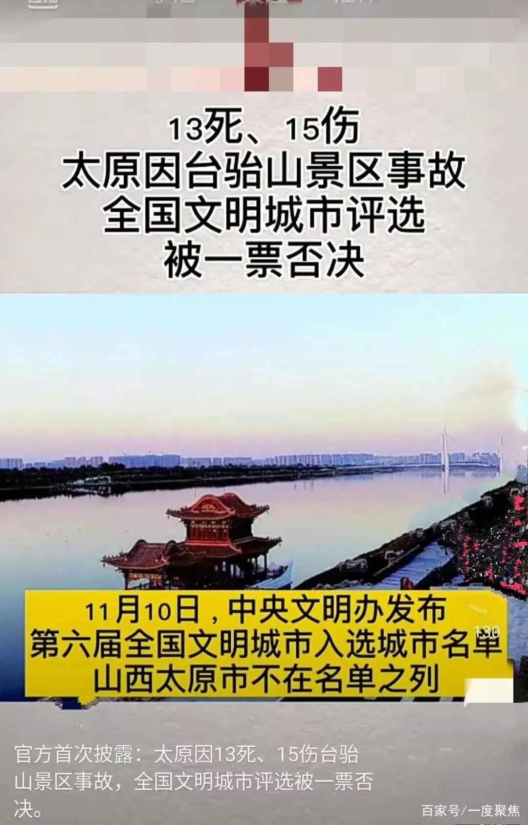 后来,新京报政事儿披露:太原因13死15伤的台骀山景区事故,全国文明城市评选被一票否决!