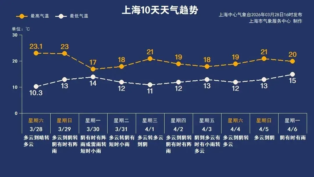 【明起迎雨】明天(3月30日)将有一次明显的降水过程,局部地区雨量可达大雨,可能伴有雷电、大风。下周西南暖湿气流活跃,周二以及周四至周五仍有降水过程,其余时间以多云或阴的天气为主。气温方面,下周最低气温在11℃-14℃,最高气温在17℃-21℃。