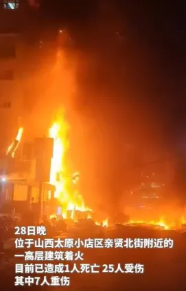 根据官方通报,截至目前,此次火灾已造成1人死亡、25人受伤,其中7人伤势严重。伤者已被第一时间送往医院救治,相关部门正在持续统计和跟进伤情变化。