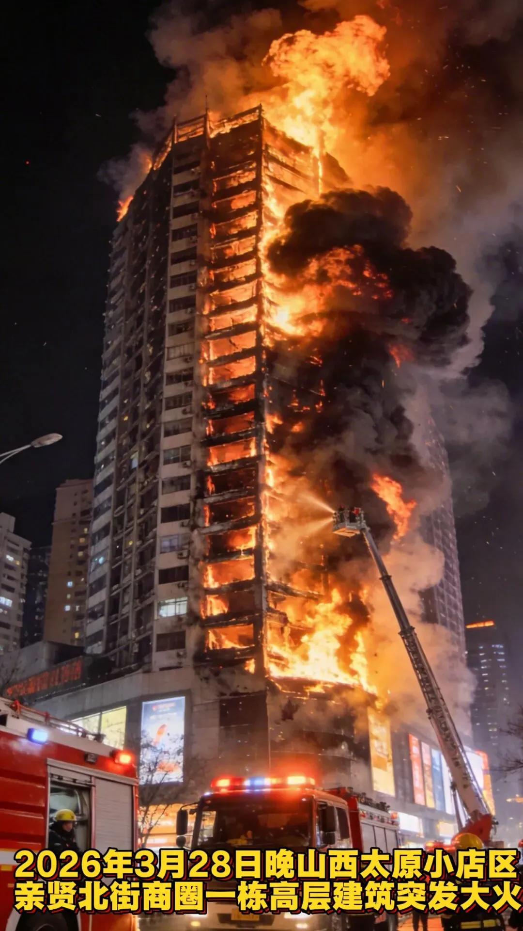 2026年3月28日晚,山西太原小店区亲贤北街商圈一栋高层建筑突发大火