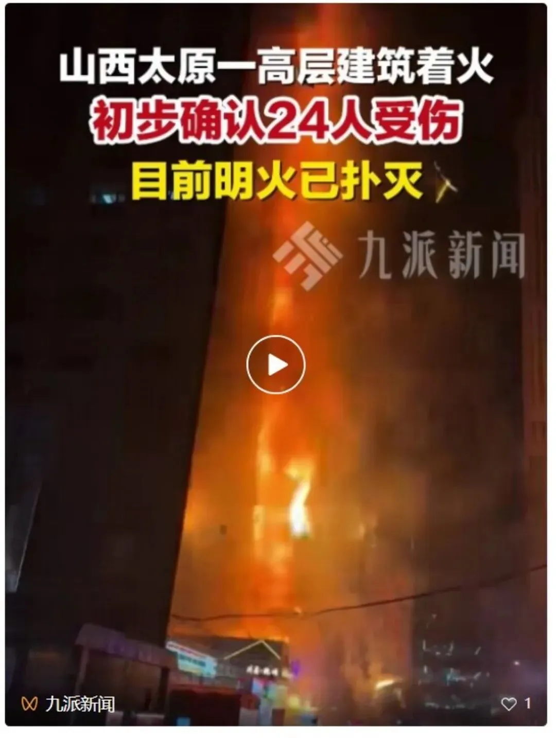 太原高层火灾现场