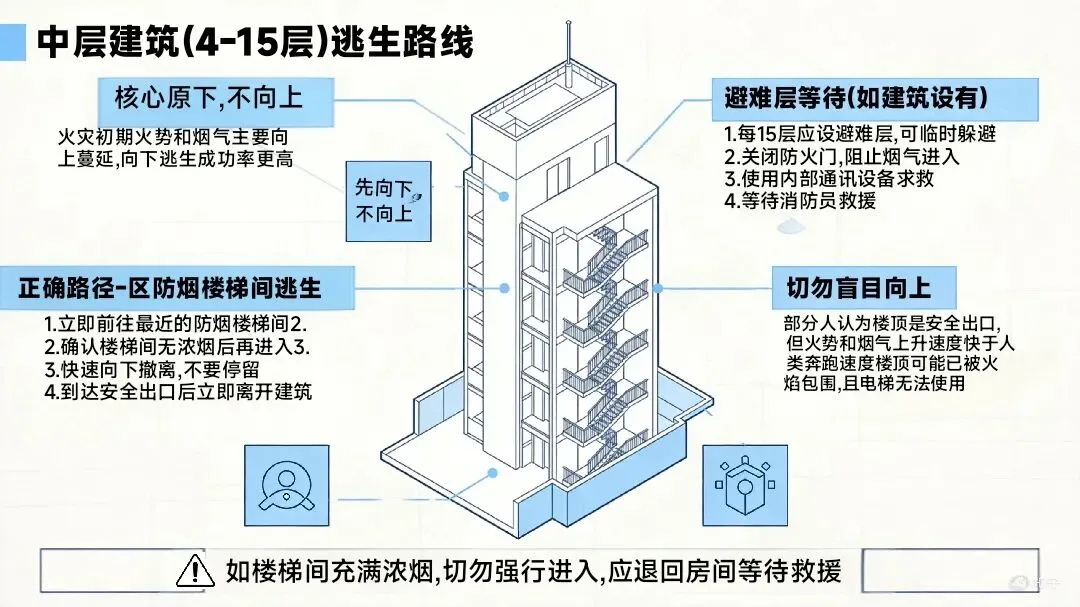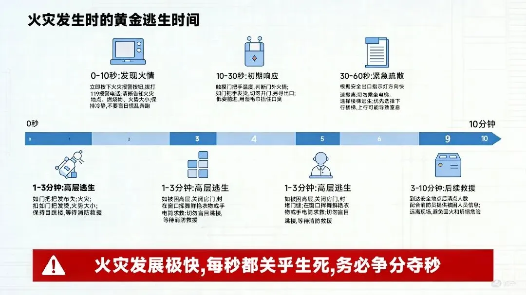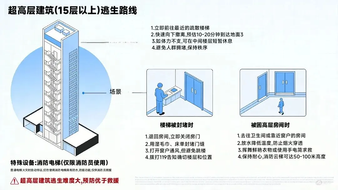 熟悉所在建筑的消防通道和逃生路线,定期进行疏散演练