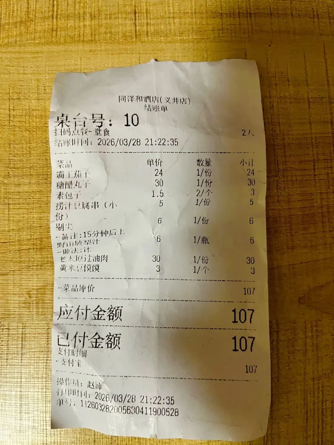 上次帝都的小伙伴林姐一行让我们在颐祥阁排了很久的队,但是结果还算是好的,风葫芦还是很惊艳的,而且还让我对魏斯理这家快餐店占据太原排行榜第一充满了好奇!最近见了好多的朋友,有刚认识的,也有认识十来年的网友,今天见面的八七就算网友奔现了。八七是我们马蜂窝的小伙伴,认识得有十来年了,来山西游玩问过我几次问题,但是没有见过,今天终于有机会一起约饭了,真好!我本来说要和八七约河东韵来,因为颐祥阁排队太严重,我可真不想等那么长时间了。河东韵就是原先的颐祥阁二部,我其实在这吃的特别多,沛公和我经常去,我带同学们也去过很多次,我其实觉得二部炒菜好像比一部还好吃……我和董大从隋坡来吃海旺黄酱面就讨论上了,邀请同样是认识十来年有数不清相同爱好的董大来吃黄酱面,这么一看我们都是隋坡的粉,哈哈哈!八七吃这方面是专业的,我这是爱好,人家是帝都正经的大厨,大众点评都是Lv8的选手!我说那咱就看看隋坡推荐的饭店到底咋样,我还和董大打趣说你快来吧,晚上我们要去探隋坡探过的店了,董大说喊你来大连你咋不来,哈哈哈,互相伤害!下了班联系八七,八七说在小吃林吃炒凉粉呢,我说你边上有家雪山冷饮厅,你去尝尝沙棘冰激凌老棒了。我动身前往饭店排位,特厨隋坡探过的店,按理说在太原我们应该说再见的,哈哈哈,但是不就是排队么,排呗!路上的风景是真不错!早上天天是奔着这个方向来,回家的时候经常能看见漂亮的晚霞,不过那都是在后视镜里面,今天终于能正面相遇了!排队人真多!饭店门头也很有年代感!等位有瓜子和茶歇,颐祥阁没有,这一点同泽和完胜!但是同泽和排队都在室外,今天这天气春寒料峭,颐祥阁我上次是在室内,这方面颐祥阁完胜。隋坡的流量是真的大!凭自己一己之力把这个店排名拉到了第一的位置!这个捞汁豆腐串和我在颐祥阁吃到的区别蛮大,基本上麻酱味为主,颐祥阁则是豆腐串和蒜味,这个菜颐祥阁吊打同泽和。懂懂老师说了好的食材不需要太多的调味料,麻酱这玩意你拿拖鞋底子沾着吃也差不多一个味,哈哈哈!八七点了个大窑,我说来山西了咋能喝大窑呢!他说我看你昨天的文章了想喝维尔康在山西我们都喝什么饮料?我说那没有,他说今天转了一圈都没喝上……我说你去北冰洋是背了几个北冰洋汽水的瓶子去的,八七告我背了两个!背景为北冰洋,北冰洋汽水上的北极熊,估计怎么也没想到自己以这种形式被带回了老家北冰洋……糖醋丸子,可能是老店灯光和装修的原因,卖相不讨彩,味道还可以,丸子很脆,醋香味也可以,我和八七在门口等位的时候闻见一股子炝醋味,相当哇塞!八七说来了山西基本吃的都是面丸子,都有阴影了,我说确实是,山西吃肉全国倒数第一,早餐丸子汤现在也基本上面丸子了!我现在都是媳妇自己炸点丸子,我自己做丸子汤,有时候母亲也给拿点,秒杀早餐店的丸子十条街……八七心心念念的霸王茄子!隋坡种草的,我吃这道菜比较多,对这道菜没啥好印象,有的炸的很脆但是炸不透会有生茄子。夹起一口不脆,和八七相视一笑,果然最好的祛魅就是拥有,太家常了,八七说应该是拍的粉不够所以不脆!这方面八七是专业的,我相信他。汁调的有点像蒜蓉酱的感觉,裹点汁吃马马虎虎。这道菜很失望,我都想让服务员端下去了,太占地方了。包子馅料还行,我觉得没我媳妇包的好吃,差我丈母娘包的更是远了!吃来吃去,还是糖醋丸子更好吃点,虽然我觉得还是雪山冷饮厅二楼的更出彩一点,但是对比其他菜还是这个要好太多了……我晚上不吃碳水,八七一天深度游晋祠和省博物院中午没赶上吃饭。八七说那就在他家尝尝剔尖,告我剔尖很不错,卤子差点意思,我说我们一般爱吃酱肉的,挂汁那种,倒是这个碗挺有年代感,蛮亲切的!老太原过油肉,隋坡挺认可的,我是冲着比山西大饭店好的期望来的,虽然说这道菜我没有吃过一家惊艳的,但是同泽和的胜在菜量,用料,你要说多好吃,那没有!我说尝尝黄米豆馍馍吧,这个还可以,很热,他家的菜品都不算很热,我就不喜欢温不吞的东西,一热顶三鲜,这个不错!等位时候看着窗户玻璃上写的:宁起三更早,不将就半分,我被唬得一愣一愣的!吃完一看网红店就是网红店啊!没有任何的惊艳,期望越大失望就越大!比不上颐祥阁,我觉得芙蓉、百姓渔村也比这家好吃……我记得还有个说法,红事吃芙蓉,白事同泽和,不知道是不是有这么一回事。结账,我看了看菜单,八七说107,你去颐祥阁吃不上吧,我说吃不上!我又开始理解隋坡了,这么满满一桌子菜这么多人忙前忙后,要按食堂的标准来说性价比太高了!我和八七都算吃的比较多,比较挑的,想想这家店基本都是平价饮料,良心啊!大家在附近游玩,顺路尝尝可以,不要抱太高的期望也许会更好一点,其实我是挺喜欢麻麻花那个片汤的,晚上就算了。喜欢吃草莓、小西红柿的小伙伴公众号首页可直接添加我微信,说出你的需求,我会为你提供最优的选择,相信我,你距离太原最好吃的草莓、小西红柿就差最后一步了!亲爱的小伙伴们,在太原、榆次周边你们吃过哪家特别好吃的山西菜馆子呢?评论区都分享一下,对于山西菜我还是想要再拼一把。