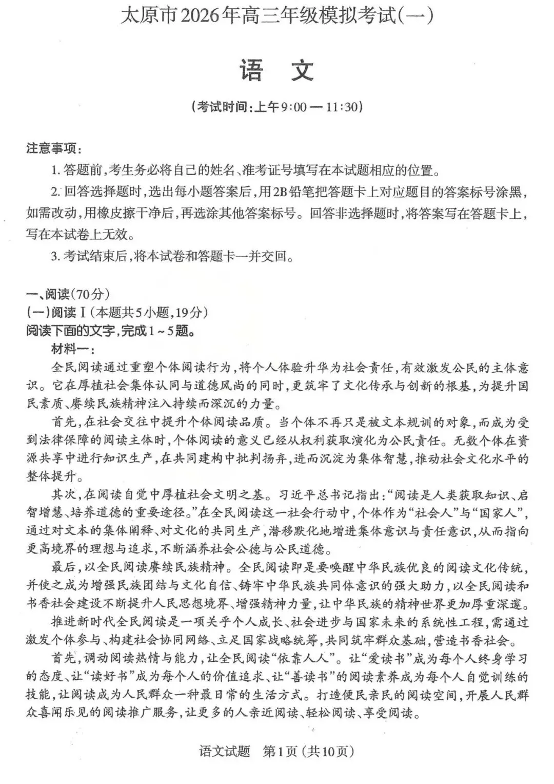 【西北卷】山西省太原市2026年高三年级模拟考试(一)(太原一模)