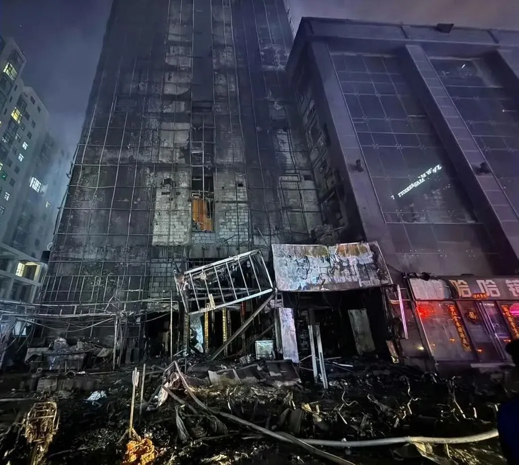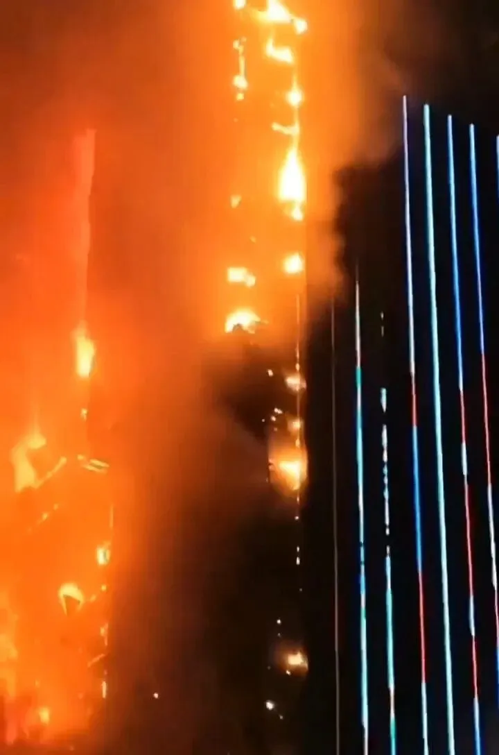 此次灾难的导火索可追溯至建筑外部。目击视频及商户反映,火灾始于底层一家烧烤店或酒店外墙附近,疑似因用电故障或违规操作引发。起火后,建筑自身的构造导致了火势迅速且失控地蔓延。