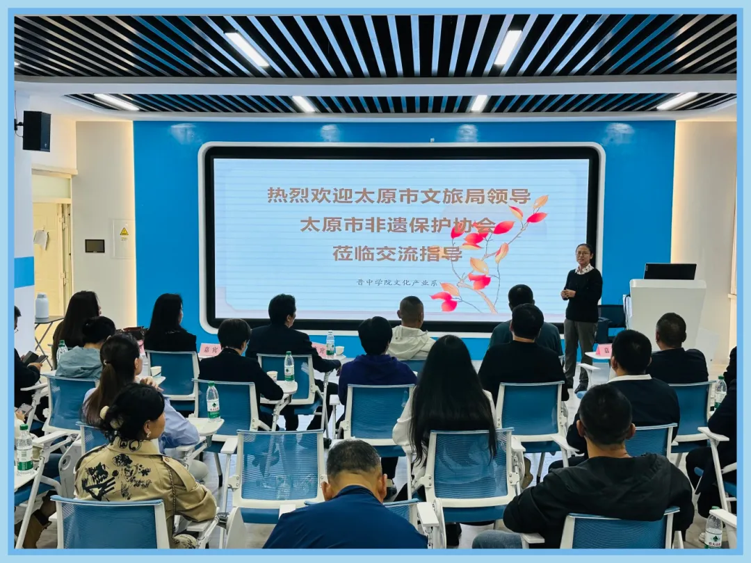2024年9月29日,太原市文化和旅游局安俊跃副局长、太原市非物质文化保护协会佟振宇会长带领太原市各区(县)文旅局领导、太原市非物质文化遗产协会会员40余人到我系参观并同我系班子成员进行了座谈交流。各位嘉宾参观了晋中学院非物质文化遗产展厅、中国共产党人精神谱系系列剪纸,全面了解了晋中文化生态保护区的现状、历史和非物质文化遗产项目,加深了对晋中非物质文化遗产保护成就的理解。