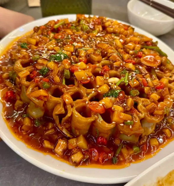 中午可以吃得扎实一点,过油肉稳当,肉片滑,木耳脆,芡汁薄薄挂一层,拌米饭很顺。要是想更有山西味,来一笼栲栳栳也合适,蘸西红柿卤或者羊肉臊子都行,面香直,嚼着有劲,不花哨,但越吃越顺口。