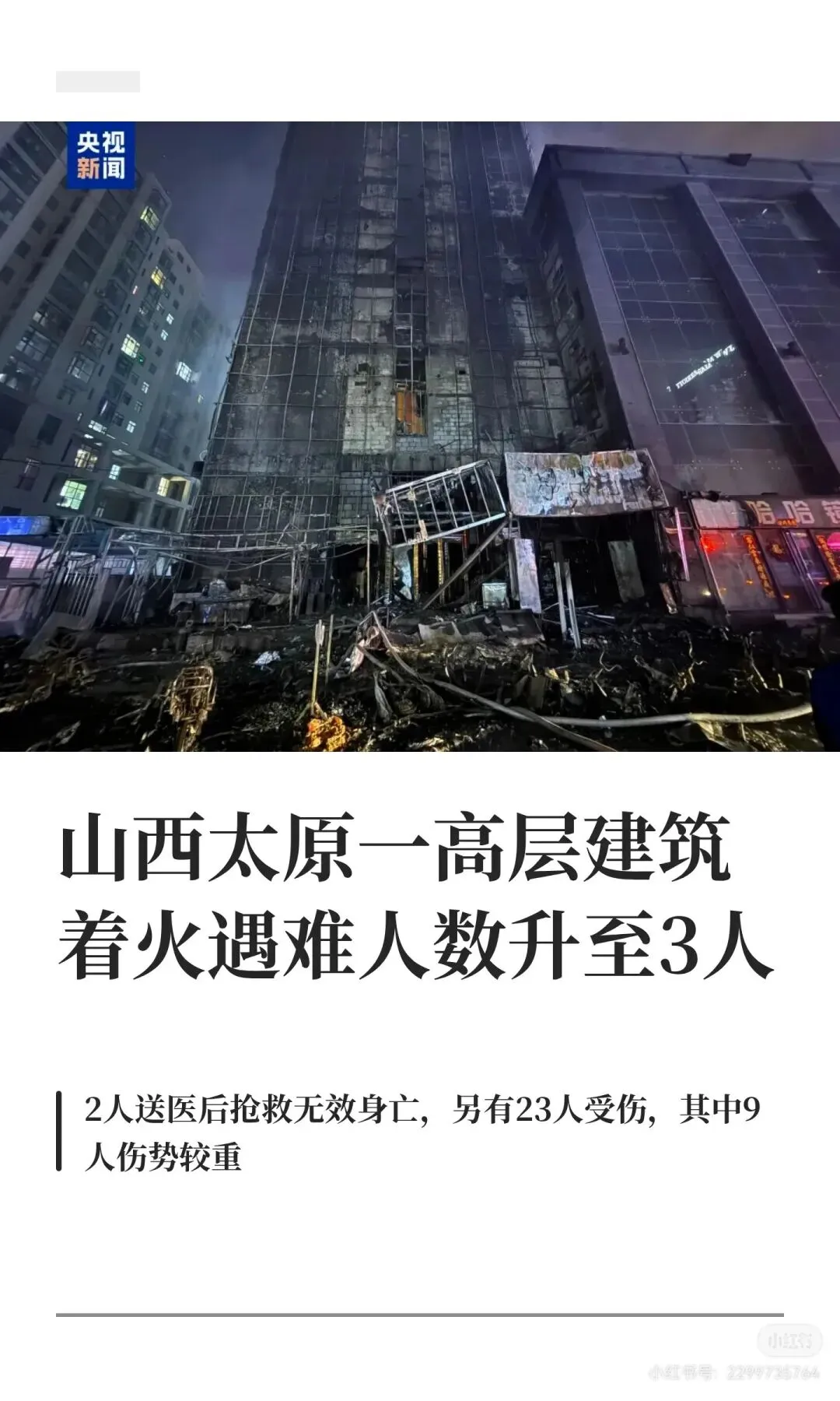 一场火灾,一声警钟;一次悲剧,一串教训。太原火灾再次提醒我们,安全无小事,责任大于天,任何麻木、侥幸、自满,都可能成为吞噬生命的恶魔。