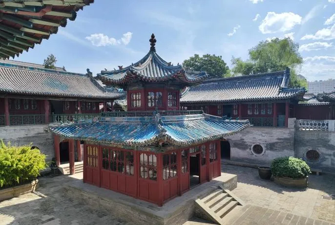 晋阳里公园最核心的部分是那片仿古建筑群,青砖灰瓦、飞檐斗拱、雕花窗棂,整个风格就是照着晋商大院的路子来的,很多人第一眼看到会觉得像平遥古城的缩小版,这个比喻其实挺准确的,因为它确实抓住了晋商建筑的那股劲儿,不是那种景区里的假古董,也不是纯粹的商业街,而是把建筑的形态和功能结合得刚刚好,你走在里面不会觉得在逛景点,就是在一个有点年代感的院子里溜达。
