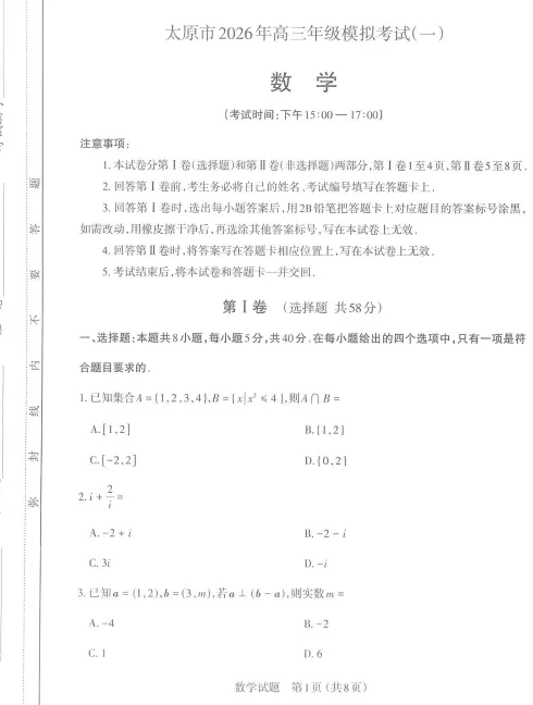 【优质试题】山东泰安2026届高三上学期期末考试数学试题及答案