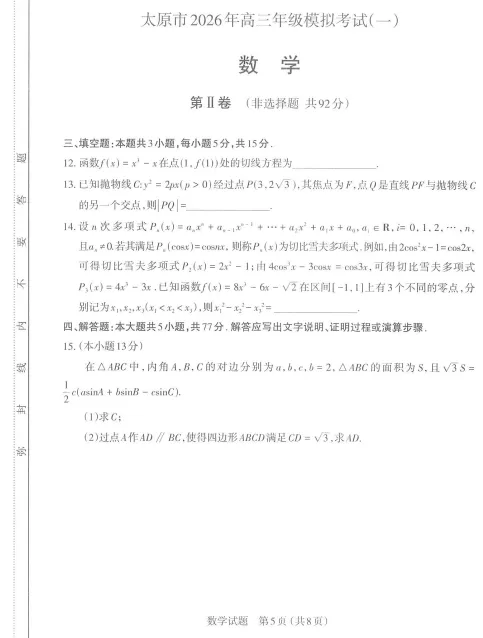【优质试题】2026 年安庆市高三模拟考试(二模)数学试卷及解答