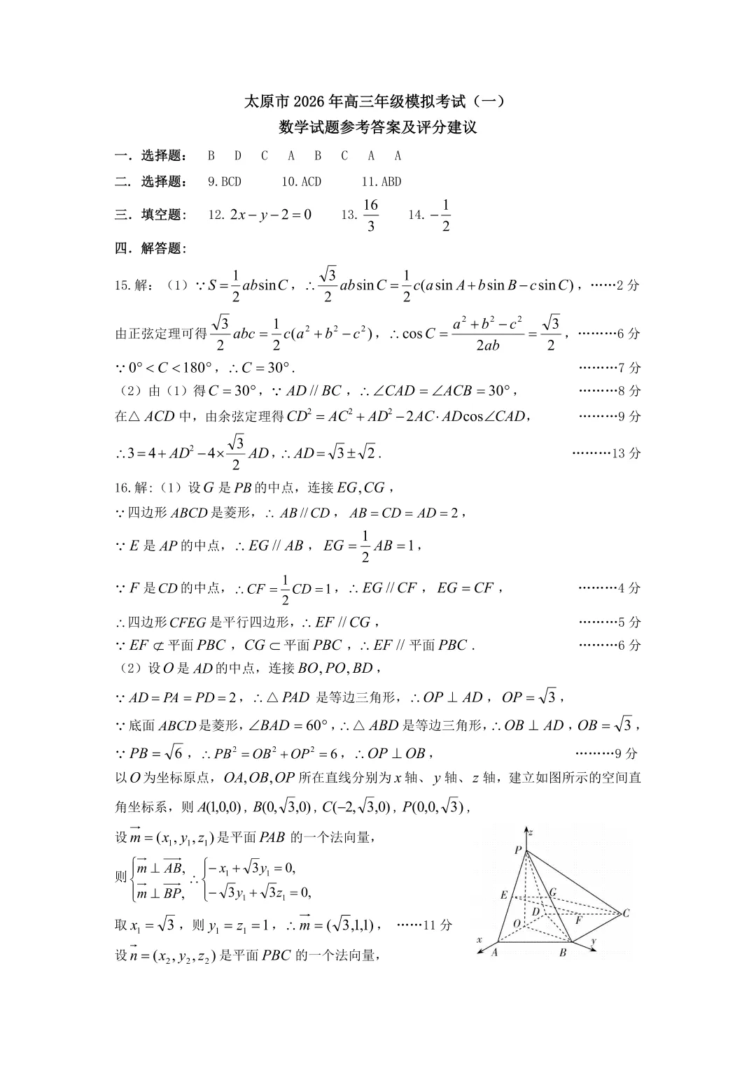 【优质试题】2026届福建省泉州市高中毕业班质量检测(二)数学试题 逐题解析版
