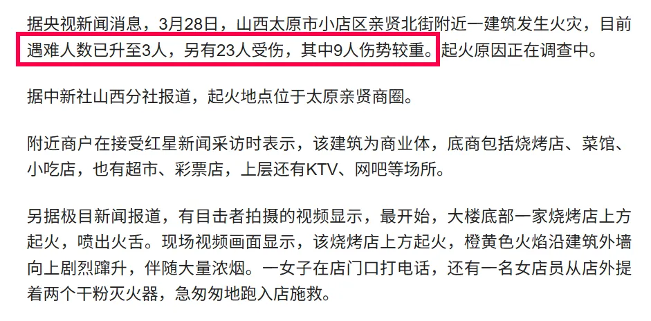太原3·28火灾追踪:起火点指向烧烤店,“大龙烧烤炒菜”或面临巨额赔偿,李荣浩四问单依纯引热议