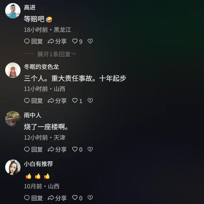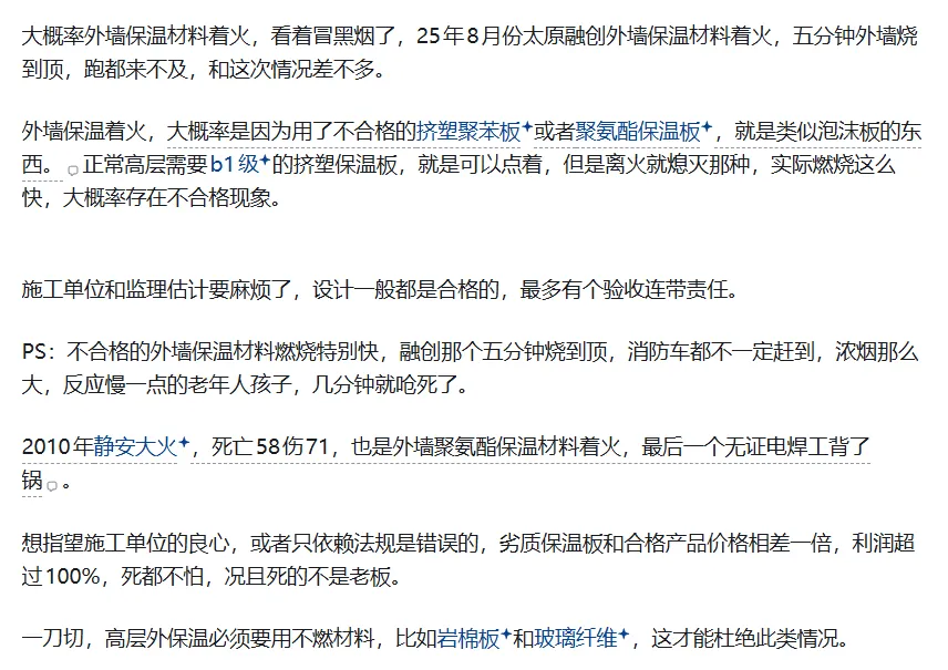即便承担刑事责任,民事赔偿仍不可避免。由于火势蔓延并引燃外墙保温层,赔偿范围可能非常广:- 人身损害赔偿 :包括遇难者的死亡赔偿金、丧葬费用,以及伤者的医疗费、误工费、残疾赔偿等。