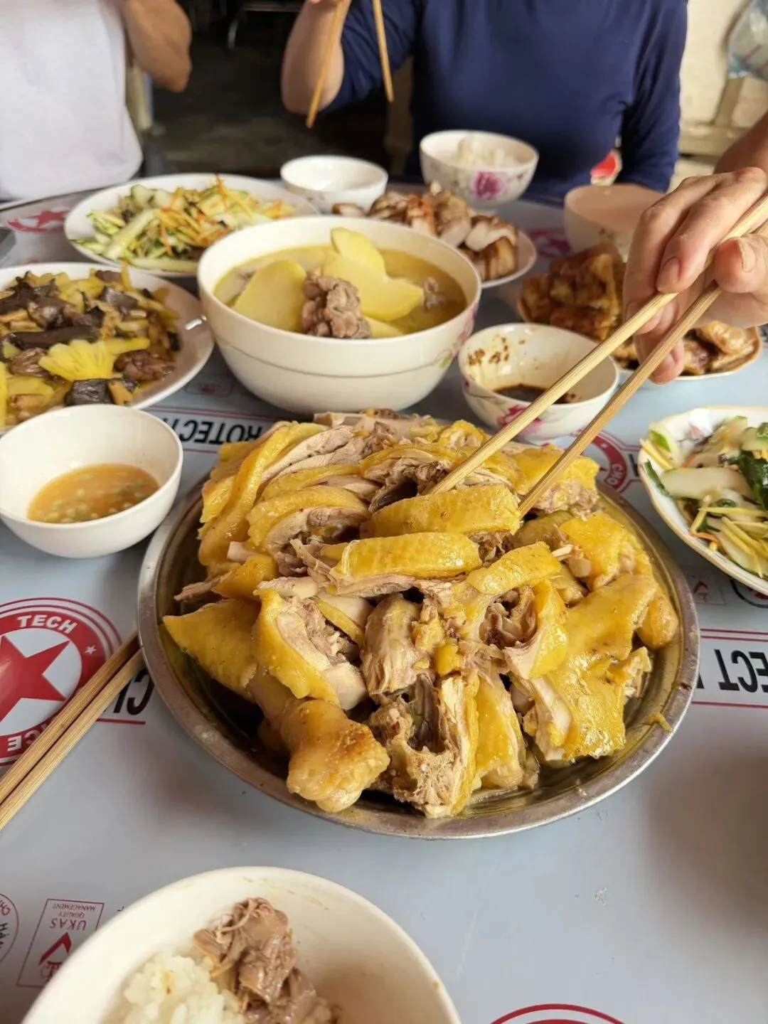 越南白切鸡yyds!姜黄赋予的黄金鸡皮,弹牙又入味,蘸料酸甜微辣,每一口都在舌尖跳舞。