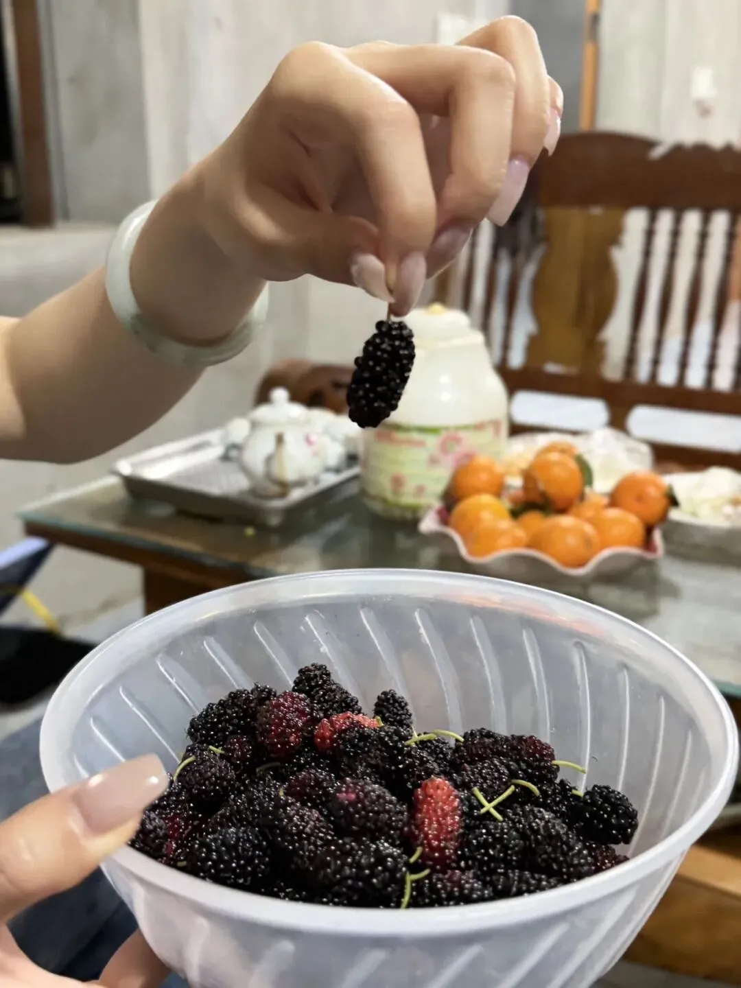 又到了吃桑葚的季节,刚洗好的果子带着自然的甜,连手指都染上了温柔的紫。