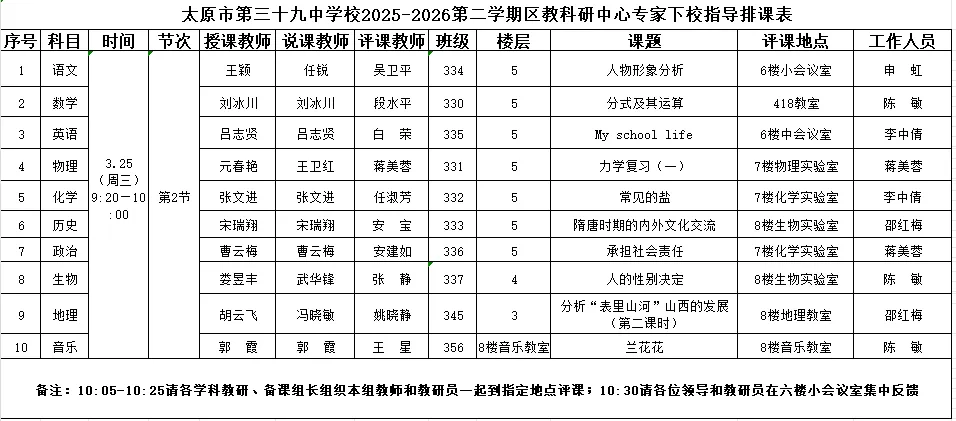 当樱花雨落满三十九中窗棂,一场与教育春天的邂逅悄然启幕。3月25日,太原市第三十九中学校迎来太原市迎泽区教研科研中心程惠萍主任率领的专家团队,10学科教研员深入课堂把脉问诊,全校教师共赴这场春日教研盛会。此次全学科督导如春风化雨,既肯定教学亮点,更指明改进方向,为学校教育教学注入专业动能。