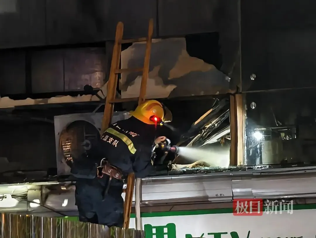 3月29日23时许,极目新闻记者在涉事大楼怡和巷一侧看到,大楼底层商户内部出现黄色光亮,疑似再次起火。