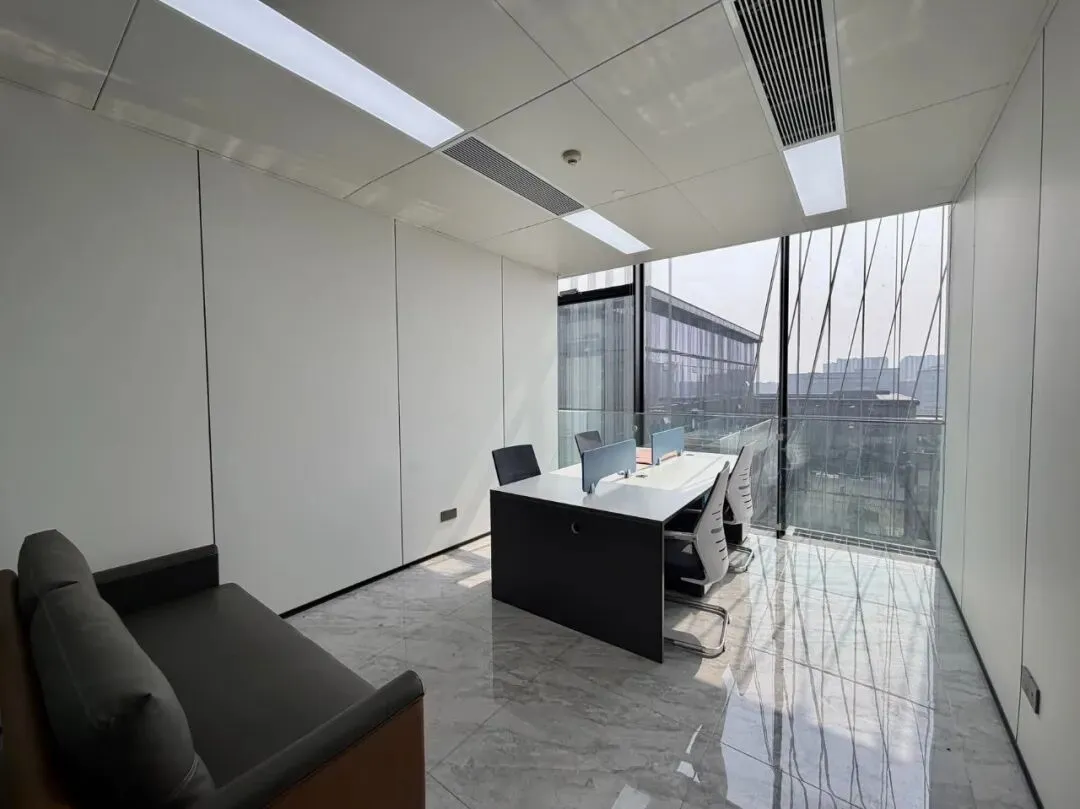 整个空间现成隔断,可根据自己团队的需求自由规划,大面积落地窗将阳光毫无保留地拥入室内,哪怕是阴沉的雨天,室内也依旧明亮通透,完全不用依赖灯光续命。站在窗边远眺,太原南站的车水马龙尽收眼底,周边商圈的烟火气也能隐约瞥见,远处的楼宇错落有致,开阔的视野瞬间驱散所有工作的疲惫,心情也跟着舒展起来。这样的采光和视野,比起那些狭小压抑的格子间,真的舒服太多,久坐办公也不会觉得憋闷。