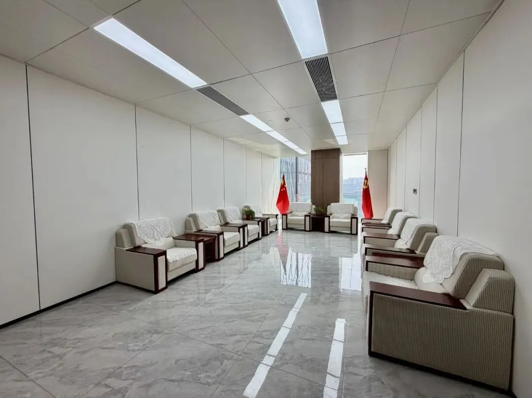 走进写字楼大厅,瞬间被它的开阔感惊艳到——超大空间干净得一尘不染,通透又敞亮,没有堆砌的奢华装饰,却处处透着干净利落的大气质感,自带高级感。更贴心的是,一楼还配套了功能拉满的超大会议室和高端茶室,入驻企业都能免费使用,平时开大型会议、接待重要客户,不用额外费心筹备;一楼的电子大屏也可预约使用,不管是展示企业动态还是活动通知,都便捷又有面儿。