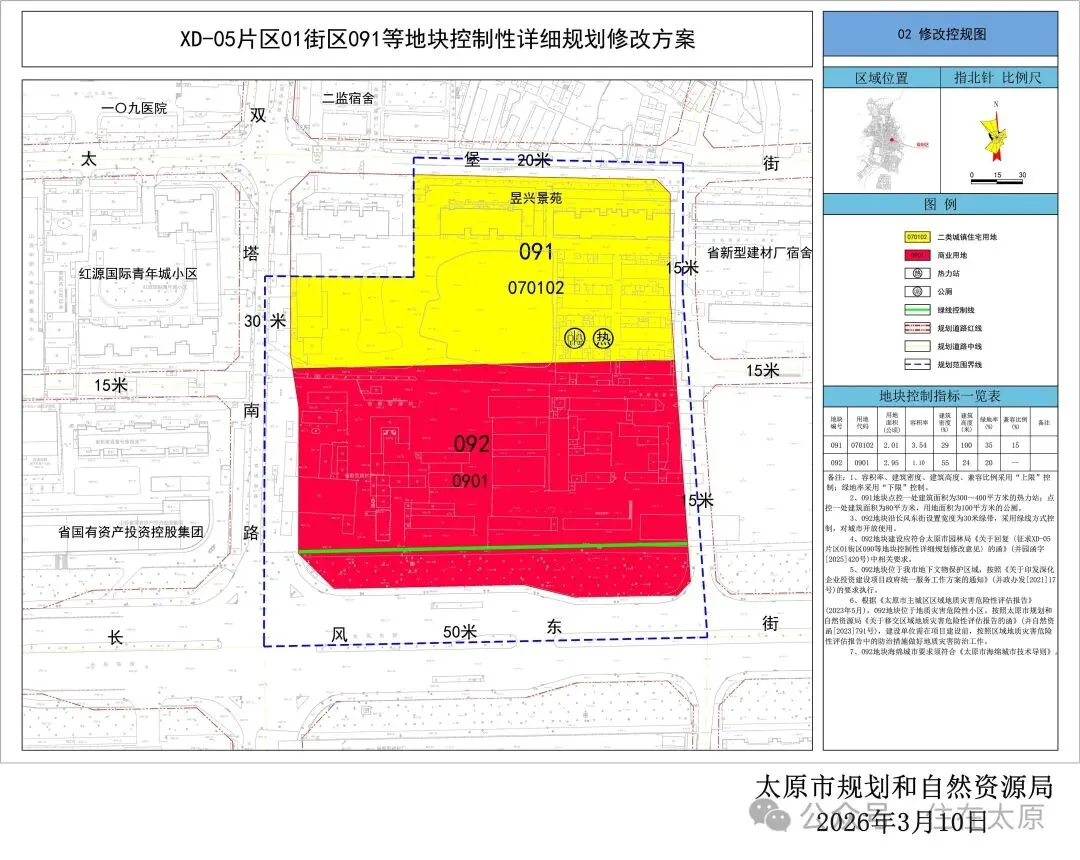 7月,太原市规划和自然资源局发布了XD-05片区地块控规修改必要性研究报告。11月,该片区地块控制性详细规划修改方案进入公示阶段。