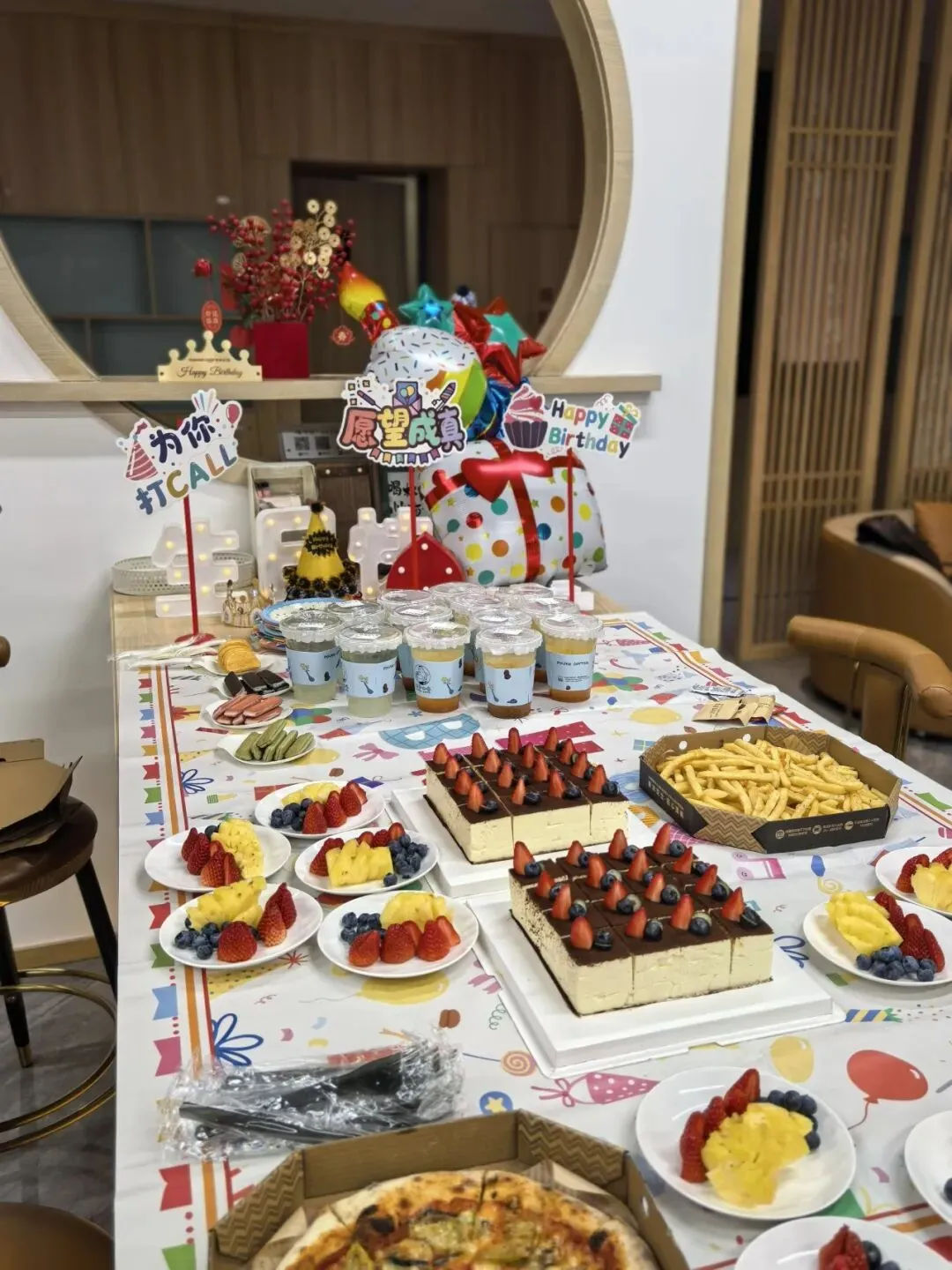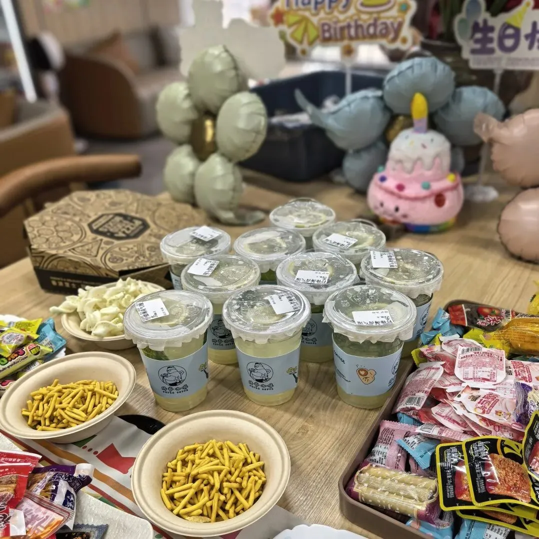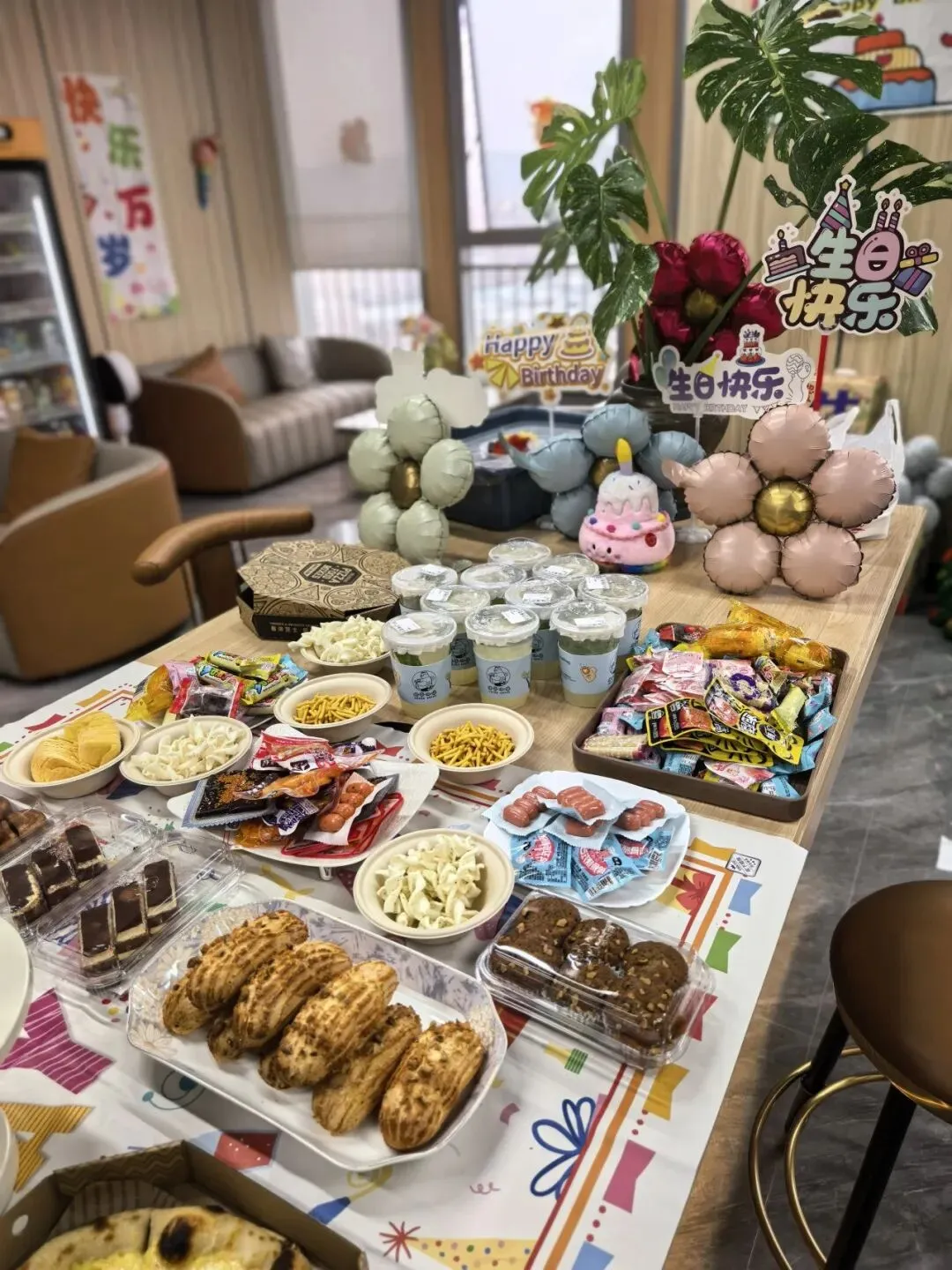 各式精致休闲小食悉数上线,口感酥脆、种类丰富,在轻松的氛围里,大家可以一边品尝美食,一边畅谈交流,暂时放下工作的忙碌,尽情享受专属生日的悠闲与欢乐。