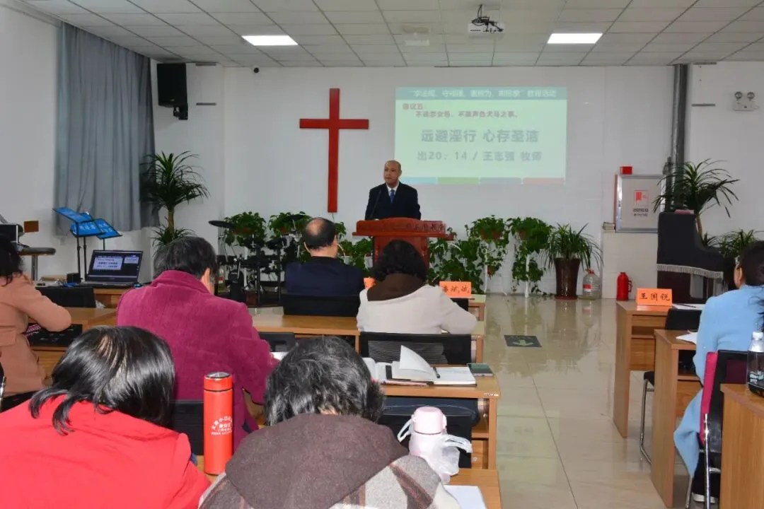 刘霞传道、栗少鹏传道、王光辉传道等七位讲员分别对应《崇俭戒奢、正信正行倡议》中的七条,以《轻生活,深信仰》《简朴之宴,丰盛之恩》《做忠心简朴的基督徒》《以俭养德,以行证道》《远避淫行,心存圣洁》《清心守道,直奔标竿》《守圣洁边界,做光明见证》为题分享。他们结合圣经教导和当下社会现实,从不同角度阐释崇俭戒奢、正信正行的深刻内涵,劝勉会众以身作则,在教会和生活中持守忠心和简朴美德,切实将“学法规、守戒律、重修为、树形象”教育活动的各项要求落到实处,共同维护基督教健康有序发展。