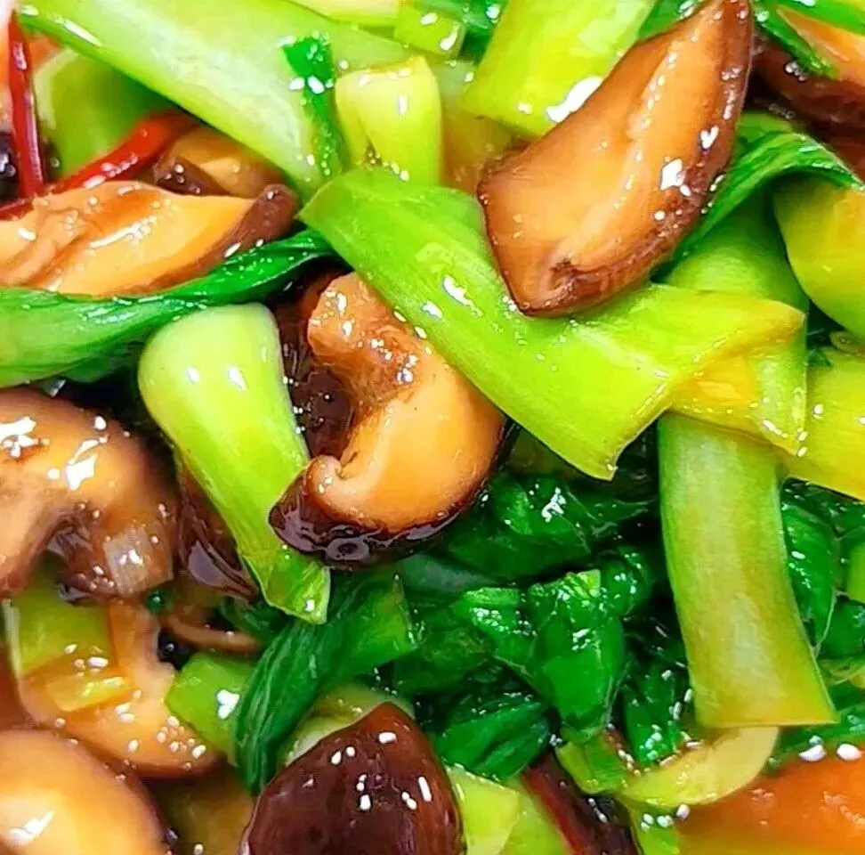 肉合菜、香菇烧菜心、西葫芦炒蛋、茴子白鸡蛋炒莜面鱼、花卷、馒头、白萝卜二米粥