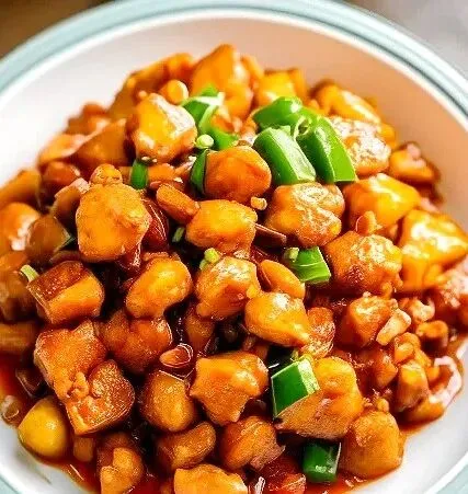 干煸火腿土豆块、滑熘鸡片、烂糊白菜、炸酱卤、翡翠面条、京都烙饼、大米、八宝粥