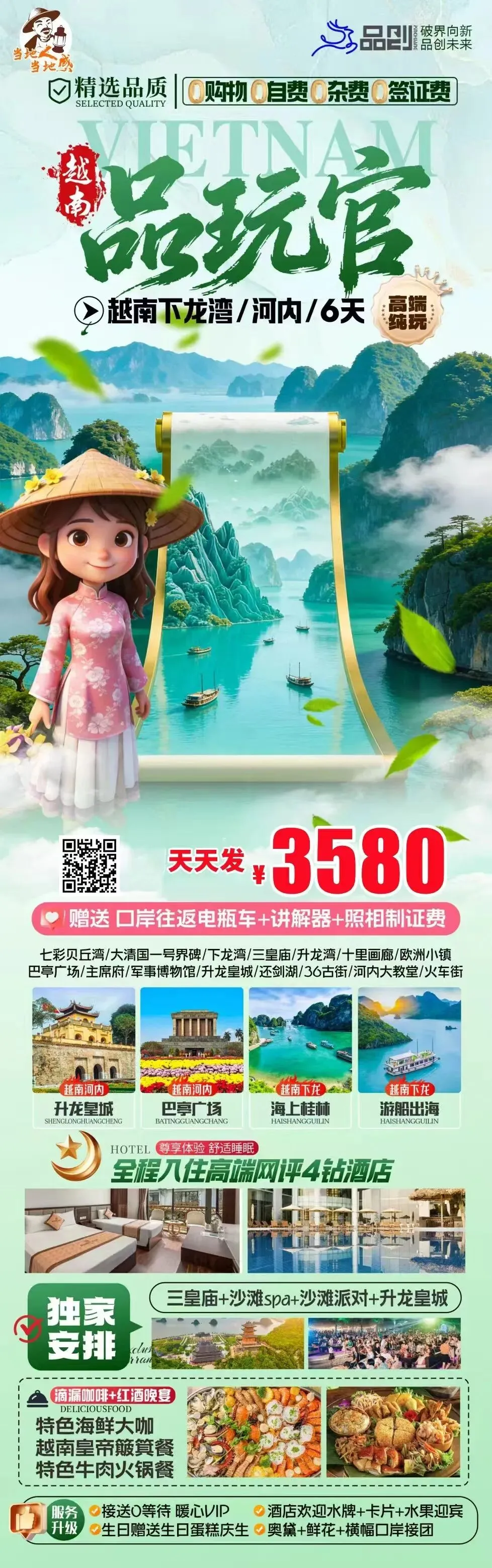真纯玩越南游!太原到越南【光辉岁月品玩官】纯玩0自费6日游3580元立减,网评4钻酒店|越南特色餐|精华景点|各种活动拉满您的情绪价值