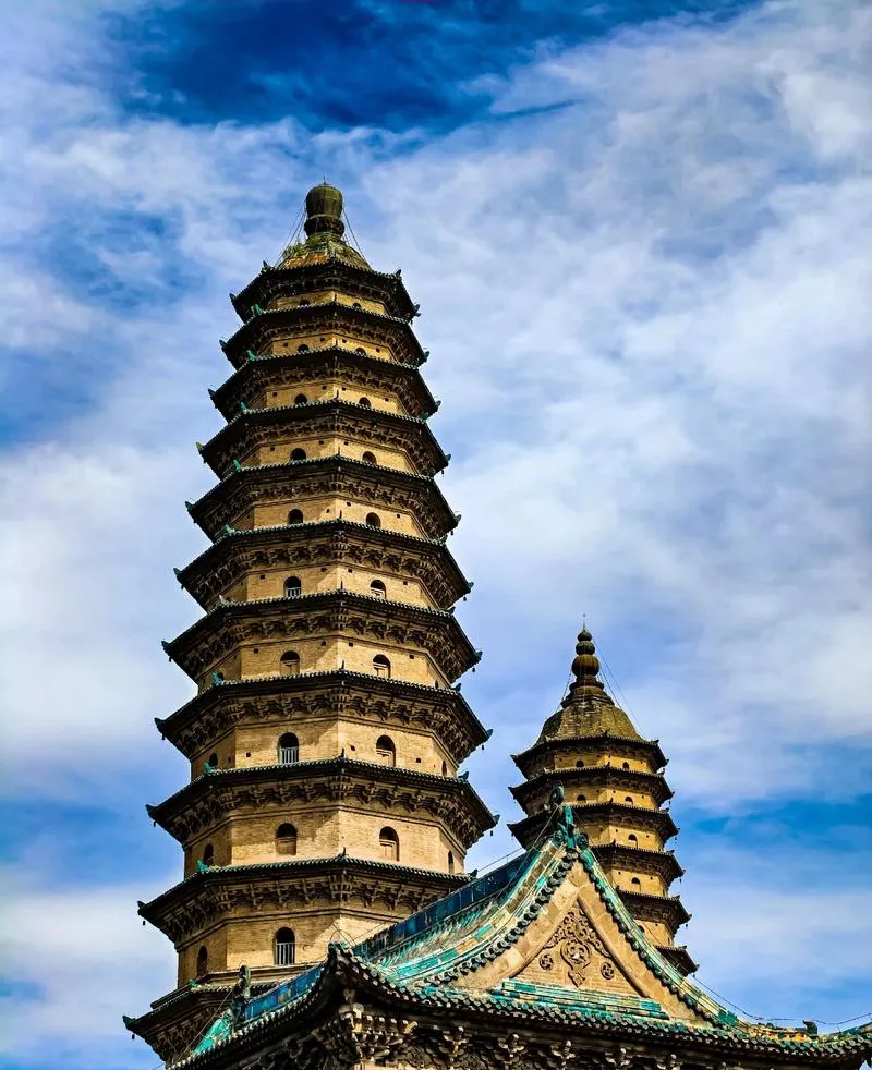 第三天去双塔寺,这两座塔是太原的标志,但很多人只在外面拍个照就走了,其实真正值得看的是塔里面的细节,那些砖雕、琉璃构件,每一层都不一样,这种精细程度在明代建筑里算是顶级的,而且你爬到塔顶能看到整个太原城,那个视角会让你对这座城市的空间格局有个整体认知,就是那种从局部细节到宏观结构的认知跳跃,这个体验是其他景点给不了的。