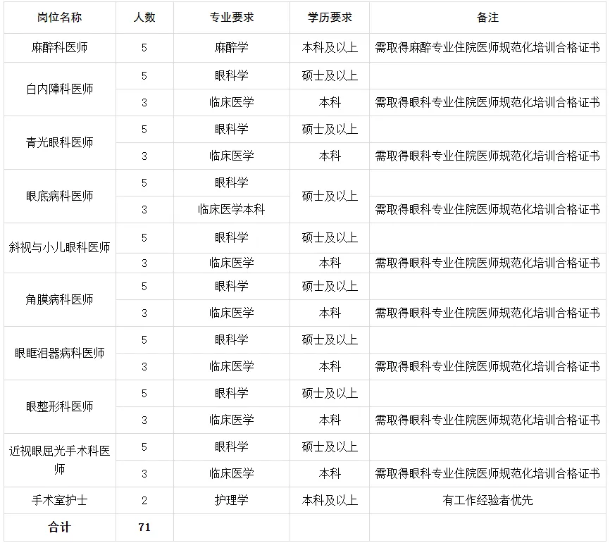 💡 运城眼科医院专业技术人员招聘71人