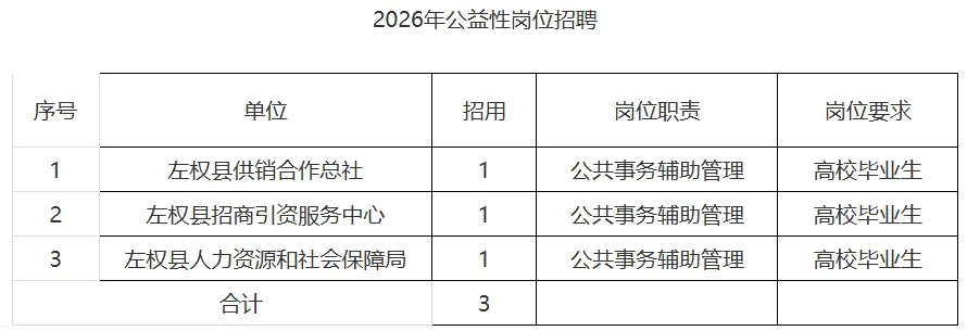 💡 晋中市左权县公益性岗位招聘3人