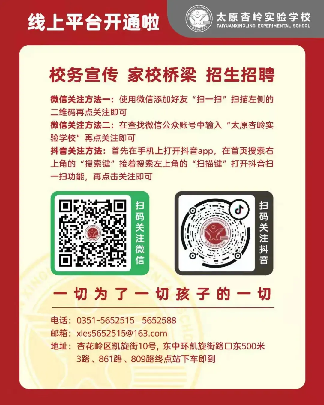 太原杏岭实验学校近年来阔步发展同时,在教育教学方面不断取得新突破,今后,将以更加优异的成绩回报三晋大地。