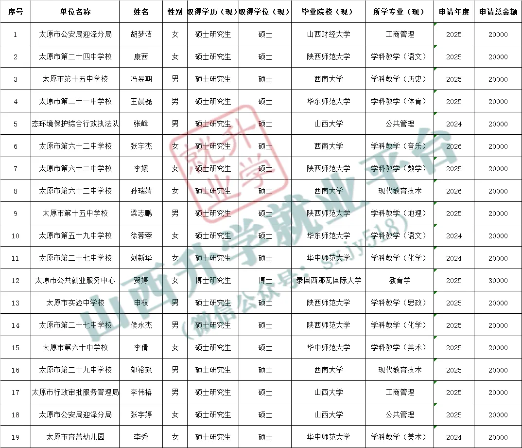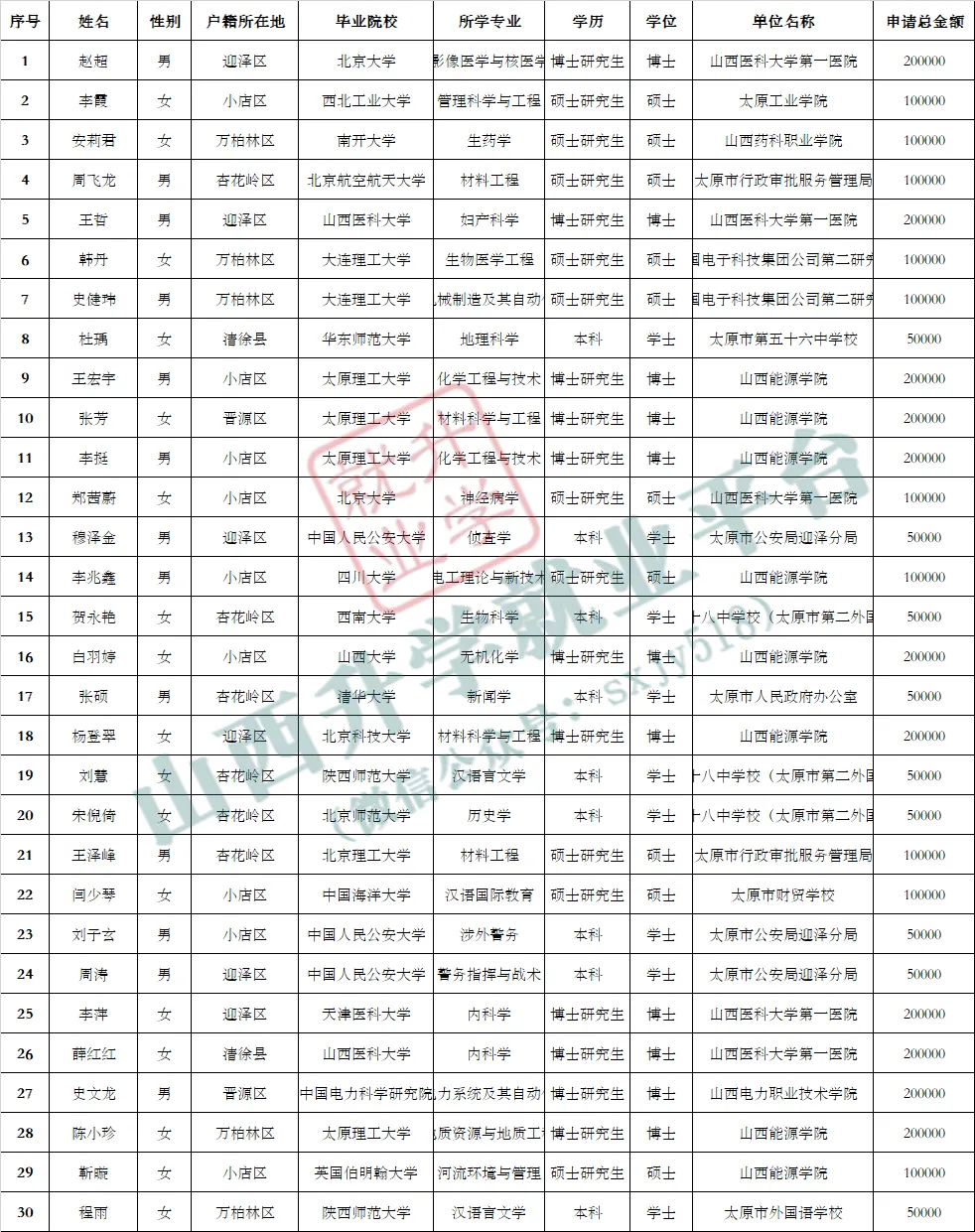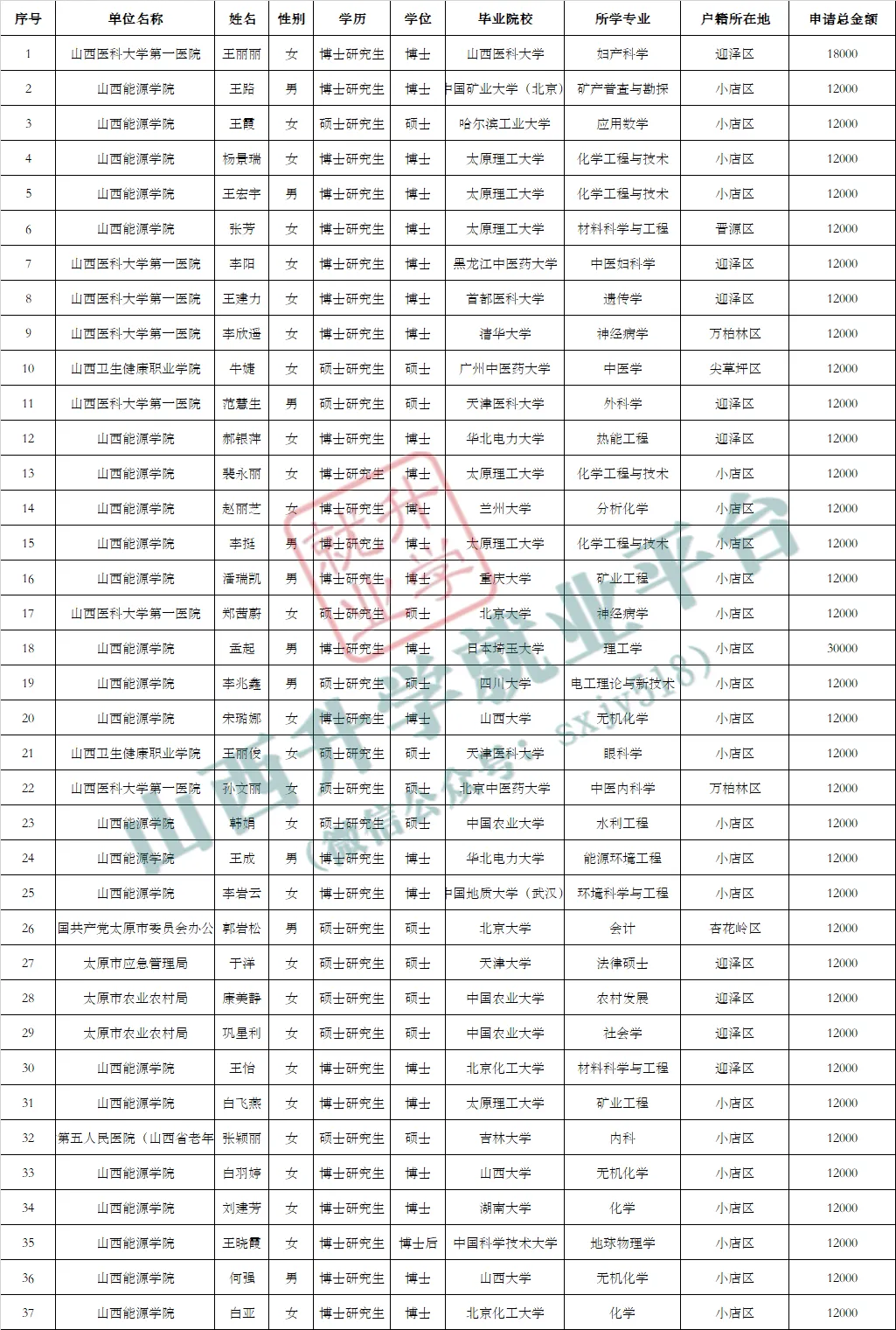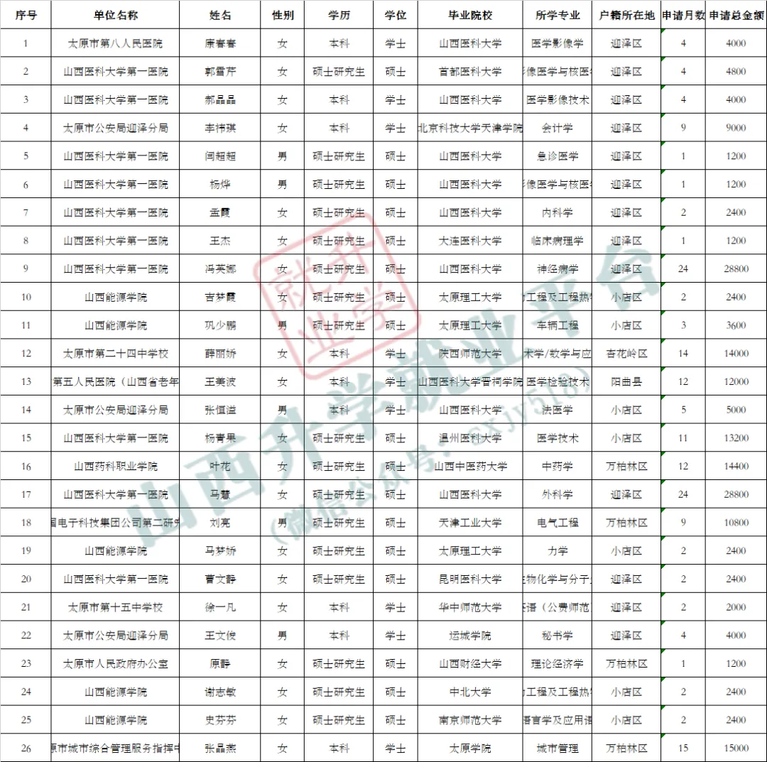 太原市人才服务窗口2026年一季度人才补助(贴)审核通过人员名单公示