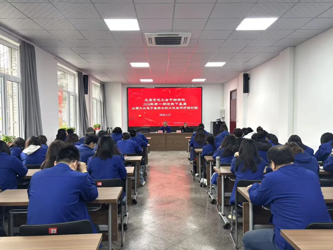 3月27日,太原市总工会干部学校2026年第一期“送教下基层”活动在大众电子集团公司工会“新时代职工之家”举行,本次培训主题是女职工权益保护,各基层分工会干部、部分女职工及工会工作人员参加培训。