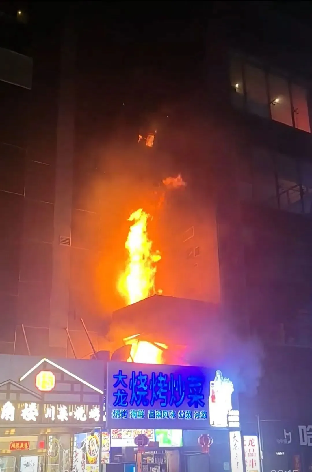 事发地一家烧烤店排烟口位置燃起大火(来源:网络)