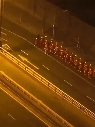现场视频显示,天色未亮,一群身穿橙红色统一服装的人在公路非机动车道列队前行,共20余人。华商报大风新闻记者核实到,视频中“暴走团”的活动地点为太原市杏花岭区五一路与北中环街交叉口南侧。
