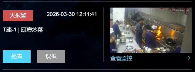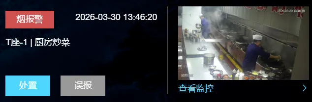 峥峰集团利用高灵敏度的烟火识别摄像头,或利用现有摄像头结合峥峰智盒-边缘计算仪,可在厨房环境中实现7x24小时不间断监测。该系统能精准识别出初期烟雾或微小火焰,并通过边缘计算设备在本地进行毫秒级分析判断,一旦确认火情风险,立即通过声光报警、手机APP等方式通知管理人员,实现对火情的“打早、灭小”,将损失降至最低。