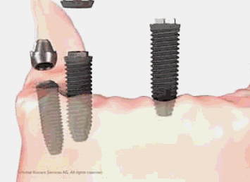 2. 植入手术:植入种植体,手术本身大约30分钟到1小时。之后需要3-6个月的“骨结合”期,让种植体和牙槽骨长牢。期间伤口愈合后不影响生活。